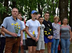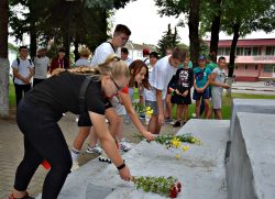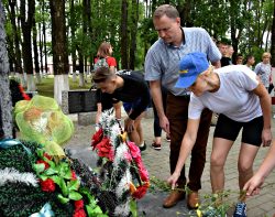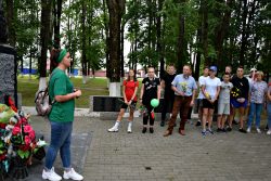 Затем, к памятнику з в сквере «Треугольник» к памятнику горожанам города, которые погибли в подпольной и партизанской борьбе и на фронтах Второй мировой войны, а также к памятнику на братской могиле воинов-защитников в Парке Победы участники велопробега возложили цветы.