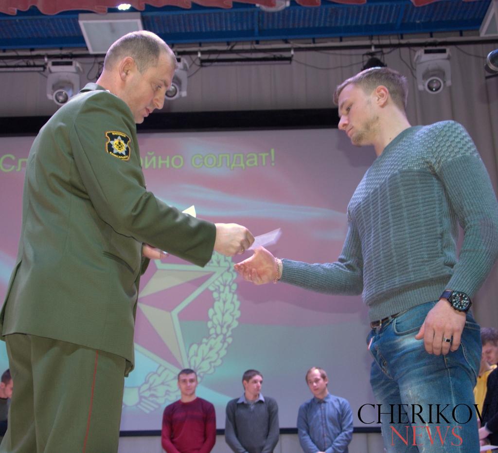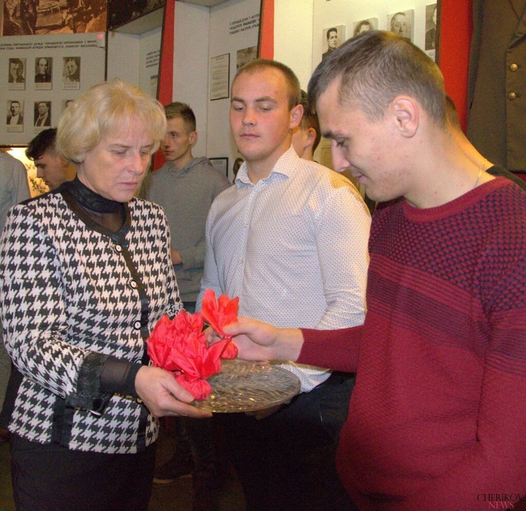 Торжественное мероприятие по этому поводу прошло сегодня в Черикове. Началось оно традиционно в УК «Чериковский историко-краеведческий музей», где будущим защитникам по традиции были вручены кисеты с землей, как символ того дорогого уголка, на котором юноши выросли, учились и возмужали.