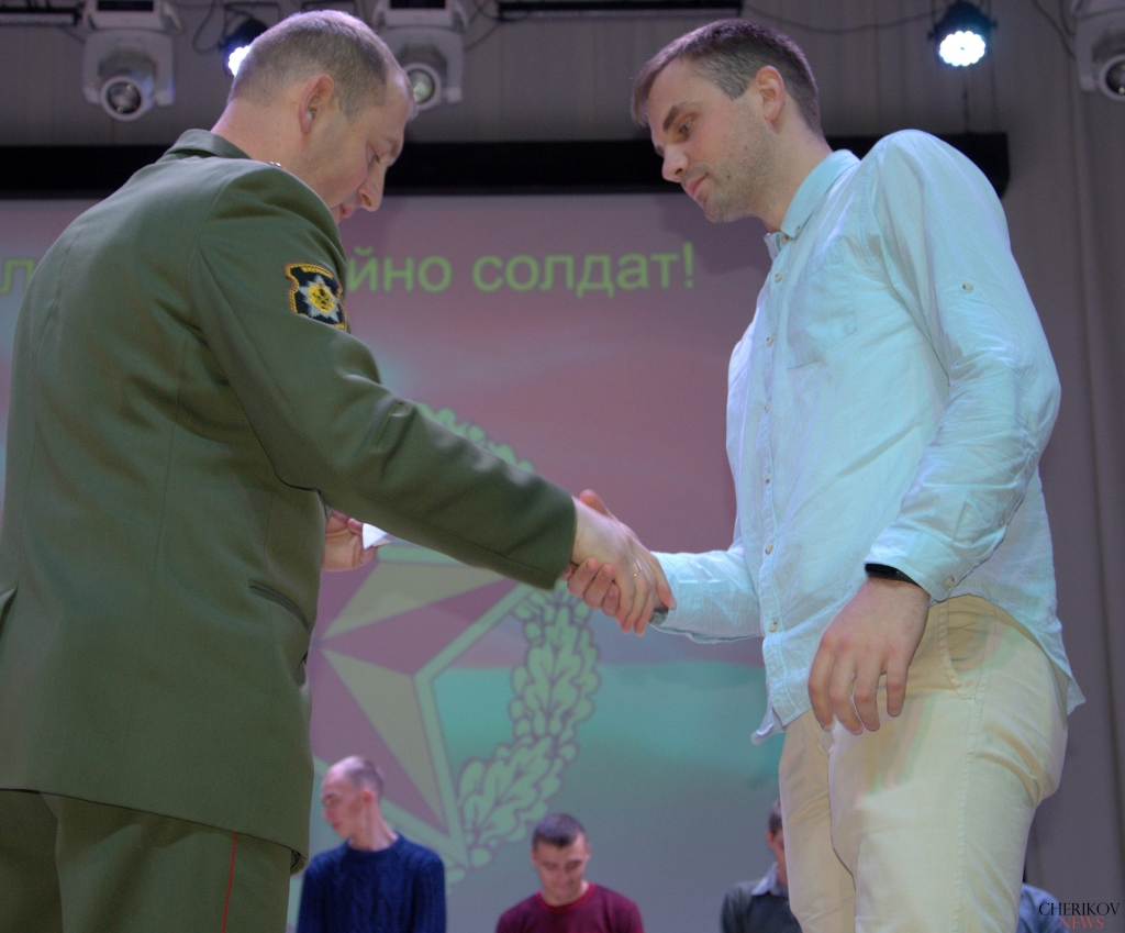 Затем призывников пригласили в районный Дом культуры, где проводить юношей добрым напутственным словом пришли почетные гости заместитель председателя районного исполнительного комитета Лариса Осмоловская, военный комиссар Чериковского и Краснопольского районов подполковник Юрий Головнев, почетный гражданин Чериковского района Андрей Медведев, представители организаций и предприятий района, родители и близкие ребят.