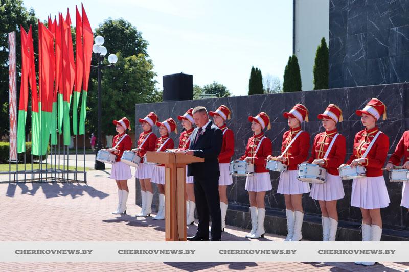 Во время праздничного митинга, посвященного Дню Независимости Республики Беларусь, который состоялся на центральной площади города, всех присутствующих с главным праздником страны поздравил председатель Чериковского райисполкома Алексей Жерносеков.