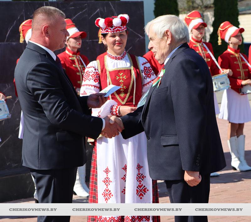 В завершение своего выступления Алексей Жерносеков пожелал всем крепкого здоровья, счастья, благополучия и добра, а также по традиции в этот знаменательный день провел церемонию награждения и вручил денежные премии районного исполнительного комитета Почетным гражданам Чериковского района — Николаю Захаровичу Воронину и Андрею Васильевичу Медведеву.