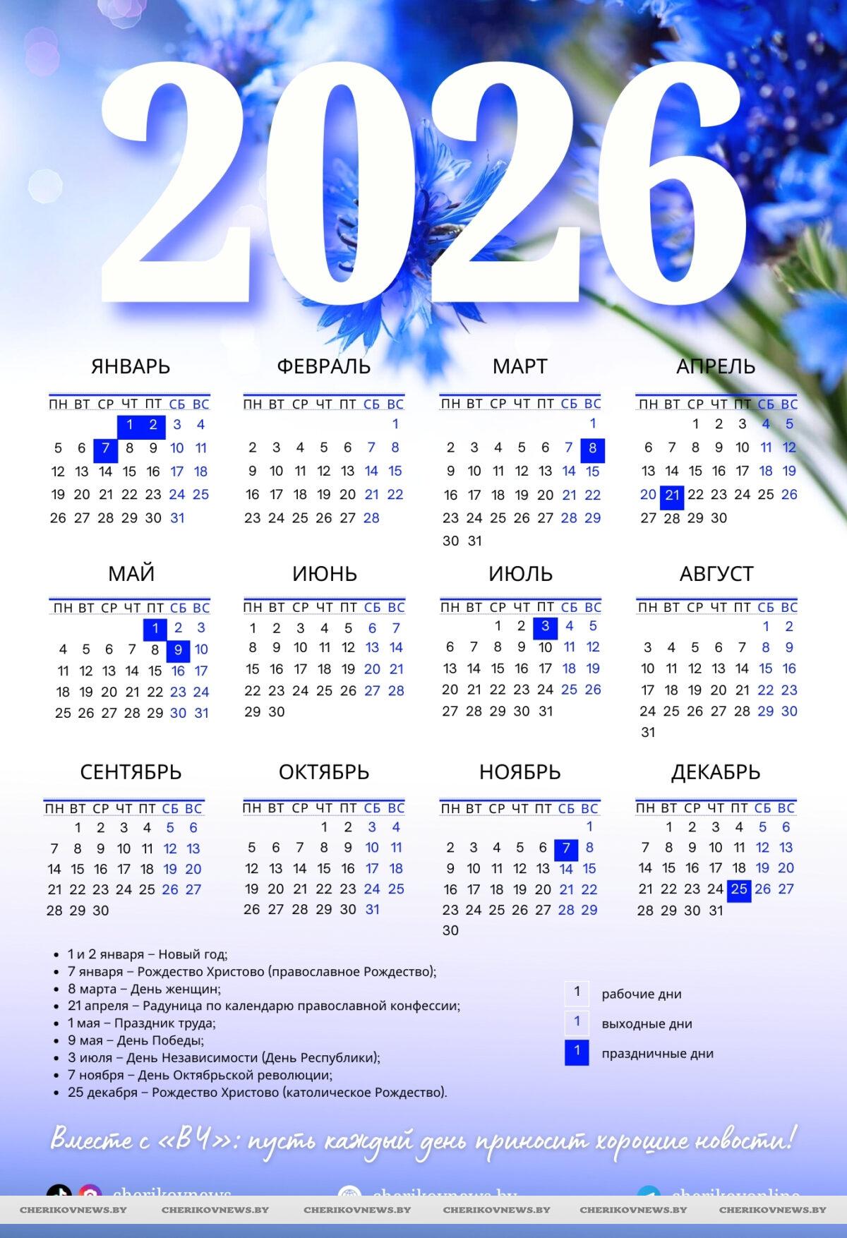 Важно отметить, что 8 марта 2026 года выпадает на воскресенье. Также предусмотрена одна рабочая суббота в апреле – 25 число.