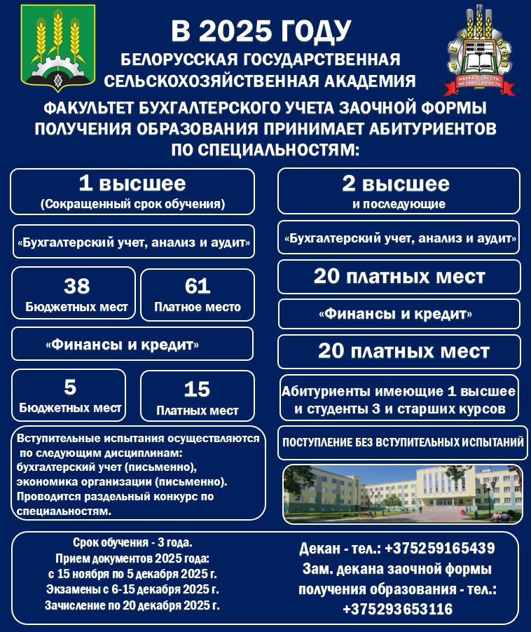 Белорусская государственная сельскохозяйственная академия приглашает на заочную форму обучения!