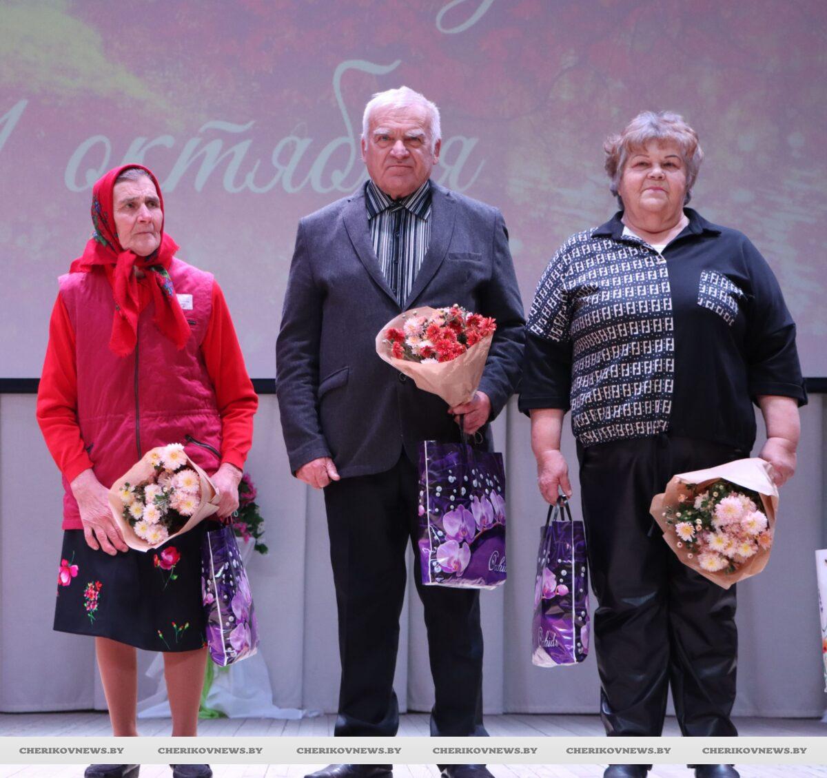 Глава района Алексей Жерносеков вручил ряд наград людям, кто своим трудом многолетним добросовестном трудом, внес вклад в социально-экономическое развитие района и трудовых коллективов. Выражая искреннее слова благодарности старшему поколению за мудрость, доброту и жизненный опыт, Алексей Владимирович также вручил подарочные сертификаты от Чериковской районной организации общественного объединения «Белая Русь» за активное участие в общественной жизни района.