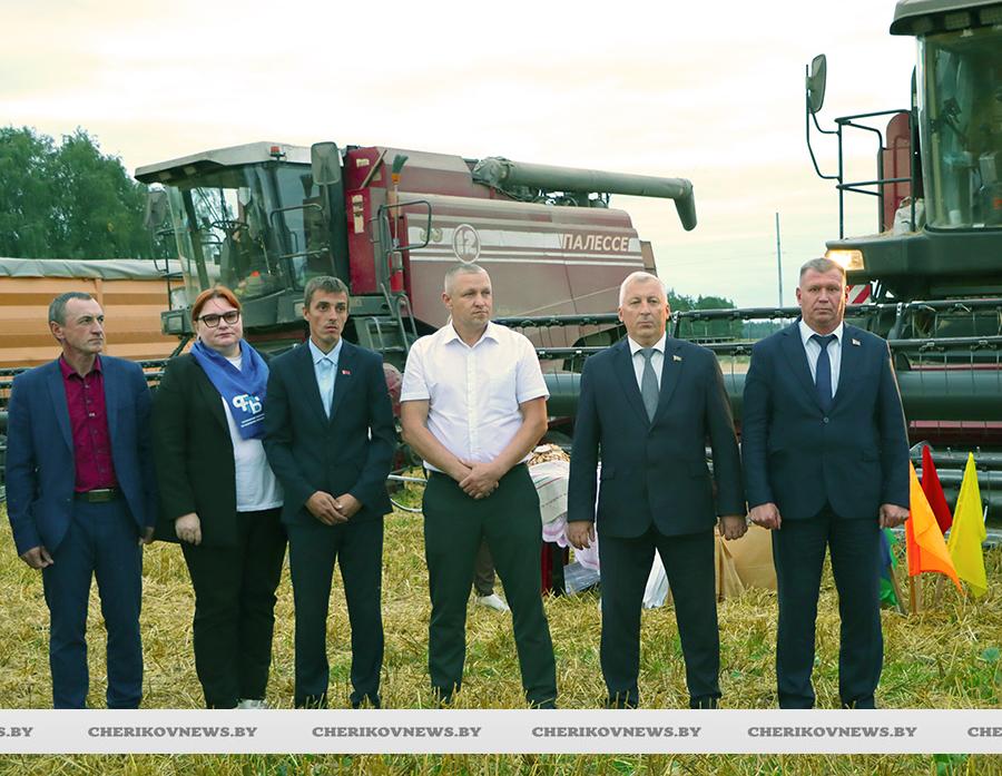 На хлебной ниве собрались представители власти во главе с председателем райисполкома Алексеем Жерносековым, руководители хозяйств, члены общественных организаций, молодежь и, конечно же, труженики села, чтобы разделить радость достигнутого рубежа