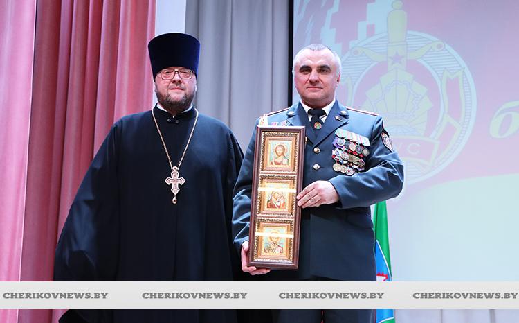 Участие в торжестве приняли многочисленные гости, среди которых председатель районного Совета депутатов Сергей Немкевич, заместитель председателя райисполкома Елена Колосова, руководители силовых структур района, предприятий и организаций Чериковщины, личный состав и ветераны РОВД, родные и близкие чериковских милиционеров.