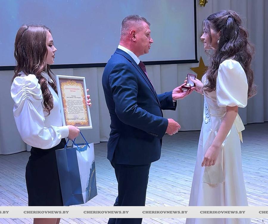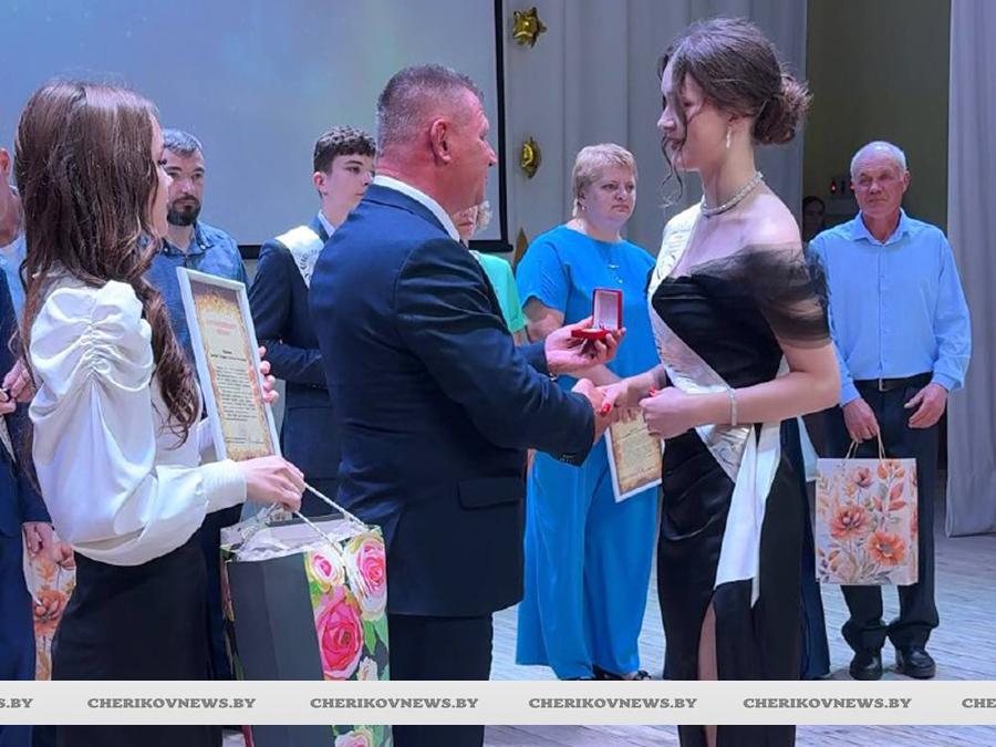 Церемония награждения стала яркой кульминацией вечера, когда 6 лучших выпускников получили золотые медали за свои выдающиеся достижения в учебе. Этот момент радости и гордости был также отмечен вручением Благодарственных писем родителям от Чериковского районного исполнительного комитета.