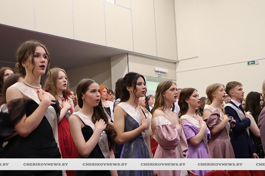 Праздник начался с исполнения Государственного гимна Республики Беларусь, после чего в адрес выпускников звучали слова поздравлений от председателя Чериковского райисполкома Алексея Жерносекова. Алексей Владимирович высказал слова признательности педагогам, которые провели выпускников по дороге знаний. И обратился к самим вчерашним школьникам с пожеланиями состояться в жизни, найти свою правильную дорогу, всегда помнить о месте, где они родились, и быть патриотами малой родины и страны в целом.