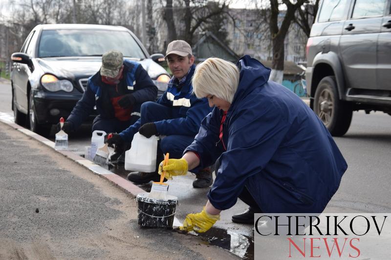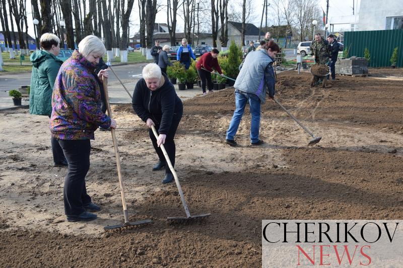 Меж тем, работа кипела по всему району. В этот день правоохранители, сменив форму на рабочую одежду, наводили порядок на территории рва по улице Слюнькиной. Здесь трудились сотрудники Чериковского РОВД, РОЧС и Чериковского отделения департамента охраны. На пляже по улице Володарского работали не покладая рук работники ГЛХУ «Чериковский лесхоз», УЗ «Чериковская ЦРБ», центра творчества детей и молодежи, центра туризма, краеведения и экскурсий. Усилия коллектива финансового отдела райисполкома были направлены на благоустройство территории кладбища расположенного по улице Ленинской. Все выше перечисленные чериковляне трудились на благо общего дела: удаляли сорную растительность, кустарники, убирали спиленные деревья и ветки, очищали территорию от мусора и пожухлой травы.