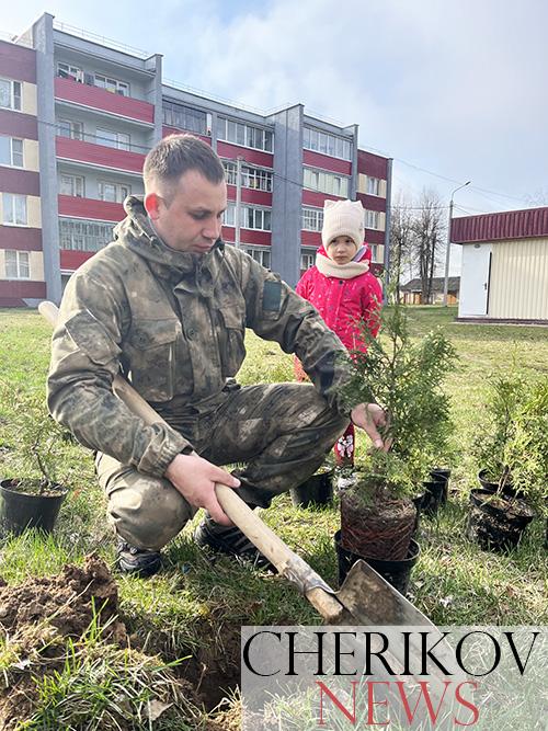 Депутатский корпус во главе с председателем районного Совета депутатов Сергеем Немкевичем, а также работниками районного исполнительного комитета, инспекцией природных ресурсов и охраны окружающей среды заложили аллею из туй возле дома № 5 по улице Калинина. Саженцы были предоставлены УКПП «Чериковский жилкоммунхоз».