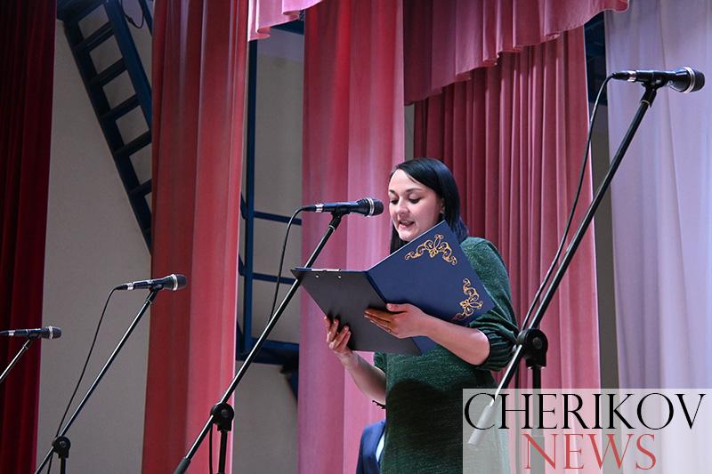 С приветственным словом к жителям Чериковского района обратилась заведующий сектором по культурно-досуговой деятельности Шумячского районного Дома культуры Муниципального бюджетного учреждения культуры «Шумячская централизованная клубная система» Анна Зимина. Анна Владимировна зачитала приветственный адрес Главы муниципального образования «Шумячский район» Смоленской области Российской Федерации Дмитрия Каменева. После этого она передала приветственный адрес и подарок от Шумячского района — Чериковскому — Олегу Малышевскому. Олег Викторович в ответ также вручил подарок от Чериковского района.