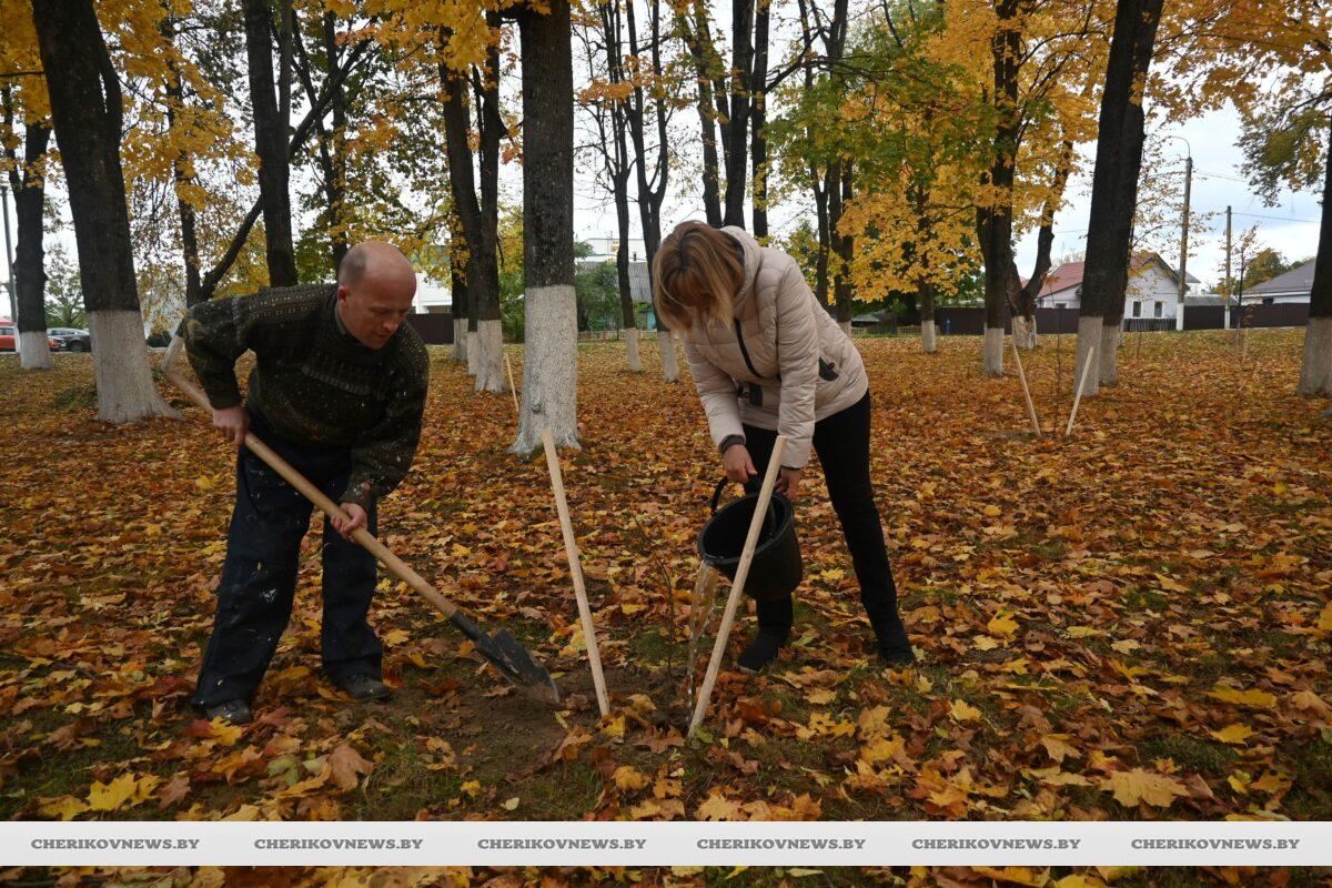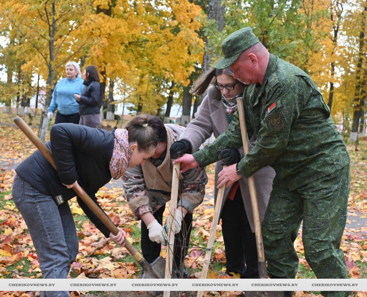 К доброму делу присоединилось руководство Чериковского района, депутаты, представители трудовых коллективов, общественных организаций и партий, которые высадили молодые саженцы на территории парка культуры и отдыха города Черикова.