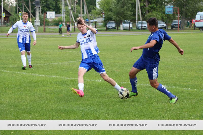 В первом тайме футболисты ФК «Чериков» явно доминировали над командой-соперником, владели мячом гораздо больше, уверенно атаковали — в результате Артем Кособцов на 31 минуте матча распечатал ворота славгородского вратаря точным попаданием. Трибуны, заполненные болельщиками ФК «Чериков», ликовали!