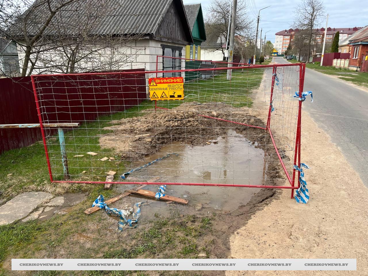 После опубликования критической статьи официальный запрос на реагирование и для получения разъяснений был направлен в филиал «Костюковичиводоканал» УПКПВКХ «Могилевоблводоканал», а также непосредственно руководству Чериковского участка. Спустя время от должностных лиц этой организации был получен ответ, в котором пояснялось, что (цитируем) «в ходе выполнения аварийно-ремонтных работ водопровода в зимний период времени по улицам Рокоссовского, Полевая, Лепешинского, Комсомольская и Краснореволюционной в Черикове, было выполнено и благоустройство территорий. Однако после наступления благоприятных погодных условий произошла усадка грунта, что является естественным процессом после проведения ремонтных работ. По состоянию на 14. 04.2026 года выполнено благоустройство по улице Краснореволюционной и Рокоссовского. По улице Полевой, Лепешинского и Комсомольской планируется выполнить до 1.05.2026 года. О выполнении будет сообщено дополнительно».