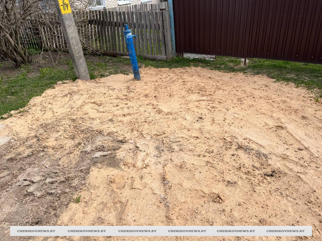 Территорию возле дома №9 по улице Краснореволюционной, по словам местной жительницы, также привели в порядок практически сразу после выхода статьи. «Приехали, привезли целый прицеп песка, высыпали и разровняли. Песка насыпали щедро, так что уровень земли поднялся. Но пояснили, что так надо. Он еще даст усадку», — рассказала чериковлянка.