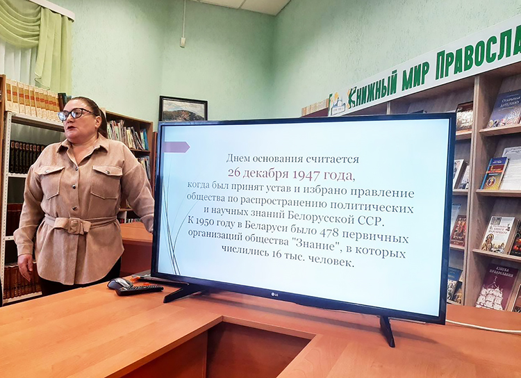 Председатель Чериковской районной организационной структуры «Белорусское общество «Знание» Тамара Галюто выступила перед идеологическим активом района с лекцией на тему «Роль Белорусского общества «Знание» в оказании информационной поддержки идеологическому активу в работе с трудовым коллективом».