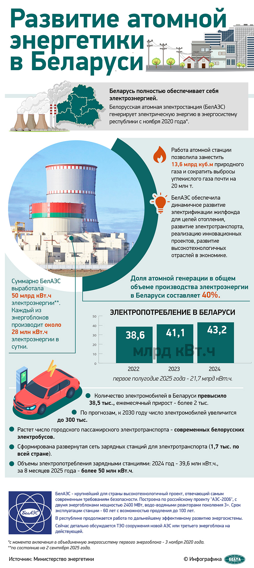 Глава государства обратил внимание, что запуск двух энергоблоков Белорусской АЭС как никогда усилил энергетический потенциал республики. «Решение о строительстве третьего энергоблока стало своевременным и важным шагом на пути дальнейшего развития Беларуси и укрепления ее суверенитета», — констатировал Президент.