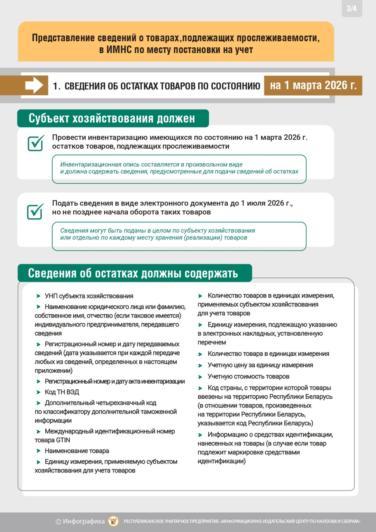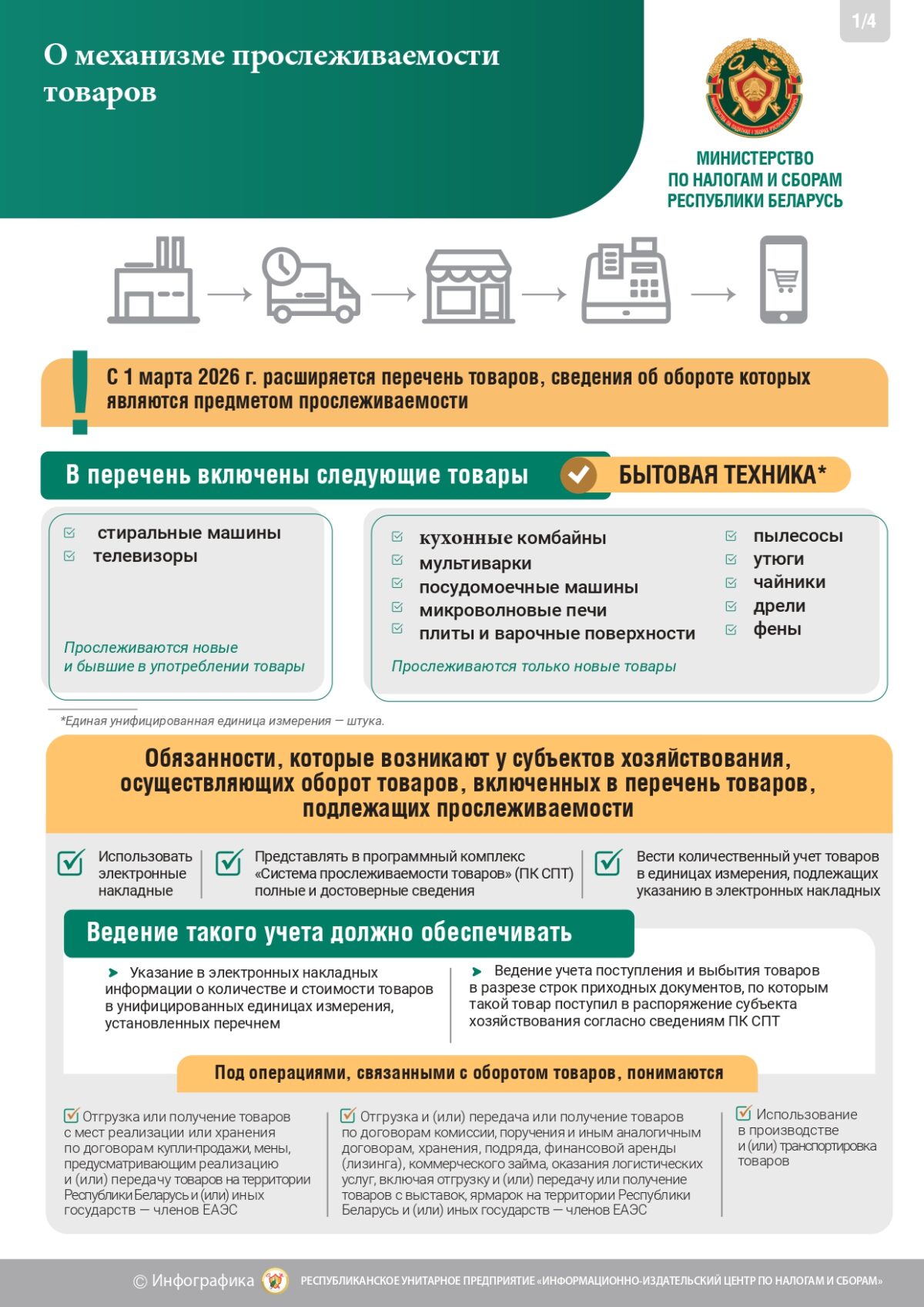 Министерство по налогам и сборам Республики Беларусь напоминает, что с 1 марта 2026 г. расширяется перечень товаров, подлежащих прослеживаемости.