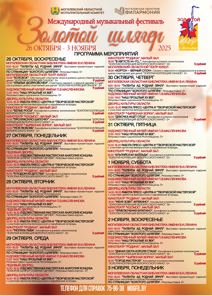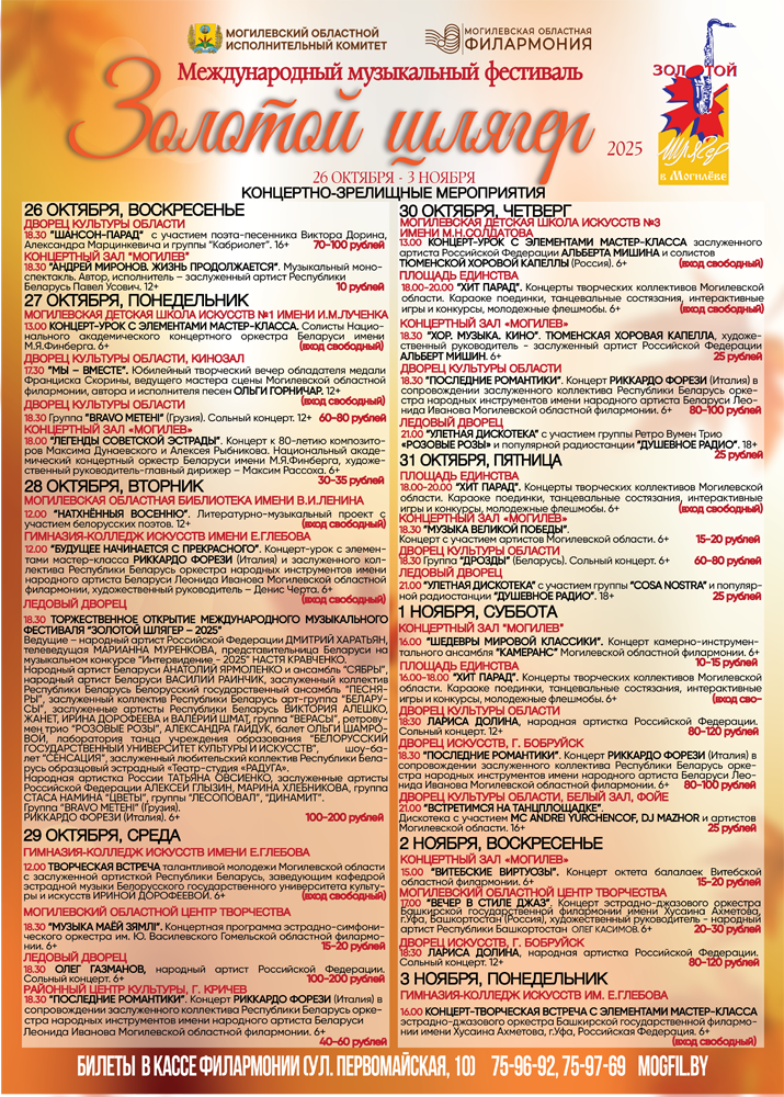 С 26 октября по 3 ноября Могилев станет эпицентром музыкальной жизни страны, принимая XXX Международный фестиваль «Золотой шлягер». В честь 30-летнего юбилея город соберет на своих сценах плеяду ярчайших звезд из Беларуси, России, Грузии и Италии, чтобы подарить зрителям незабываемый праздник.