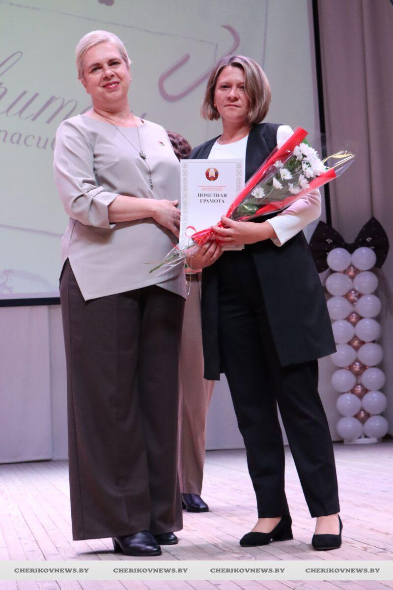 Не осталась в стороне от поздравлений и со сцены обратилась к педагогам председатель районной организации Белорусского профсоюза работников образования и науки Наталья Лазаренко. Профсоюзный лидер от всей души поздравила педагогов с наступающим праздником и выразила им благодарность за нелегкий труд, отметив, что учительство — это высокая миссия, наполненная глубоким духовным содержанием. Адресовав своим коллегам наилучшие пожелания, Наталья Васильевна также выполнила важную миссию — вручила награды педагогам-профсоюзным активистам. Пятеро представителей педагогической общественности района были отмечены Почетными грамотами Чериковского районного комитета Белорусского профсоюза работников образования и науки.