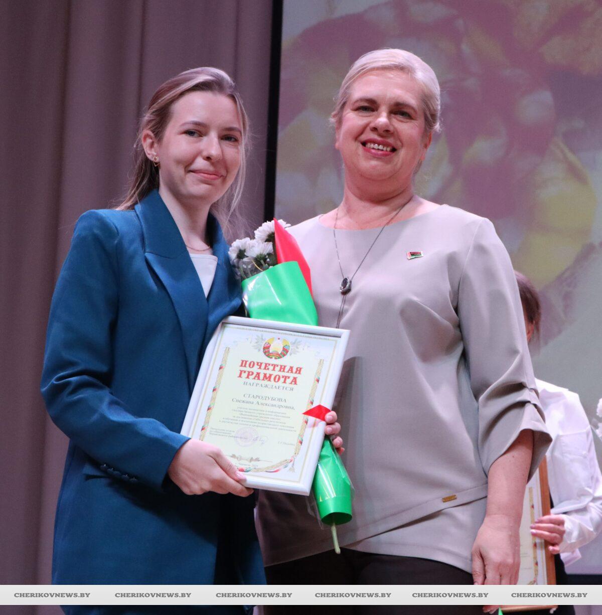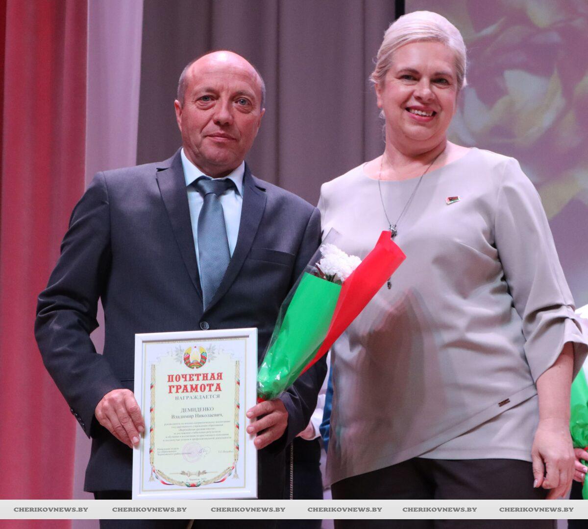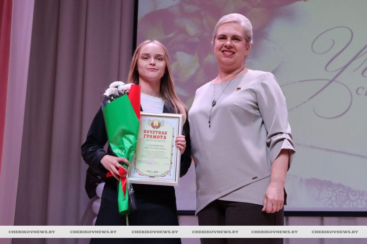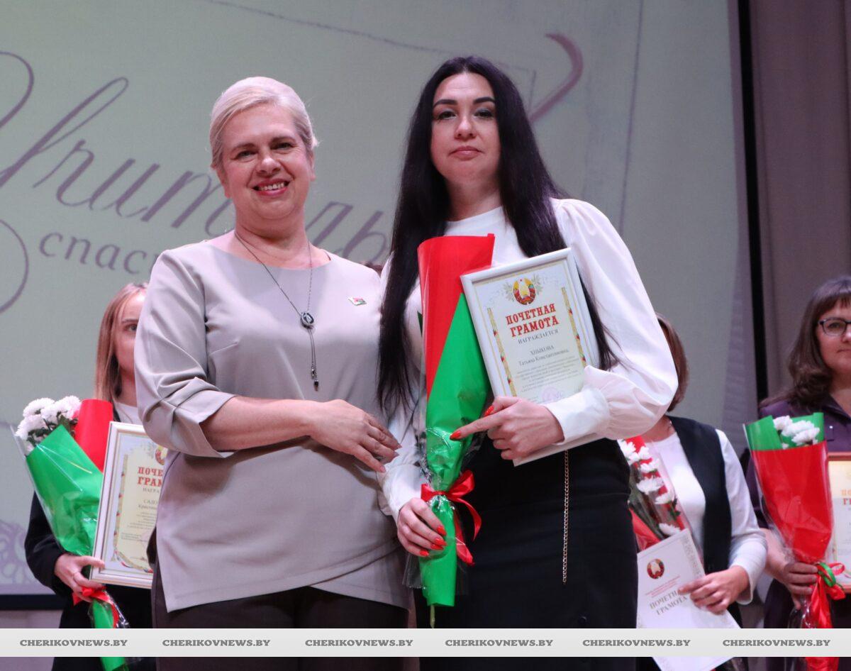 Почетной грамотой Чериковского районного исполнительного комитета награждена заместитель директора по учебной работе СШ №1 г. Черикова Наталья Плохова. Благодарность Чериковского райисполкома объявлена учителю Лобановской БШ Леониду Лукашкову. Благодарственным письмом Чериковского районного Совета депутатов награждена заведующий отделением дополнительного образования ЦТДиМ г. Черикова Оксана Довлыева. А также сразу троим педагогам района были вручены Грамоты Министерства образования Республики Беларусь — учителю-дефектологу СШ №2 г. Черикова Оксане Фатеевой, учителю белорусского языка и литературы СШ №1 г. Черикова Татьяне Гордеевой и учителю географии СШ №2 г. Черикова Светлане Федосовой.