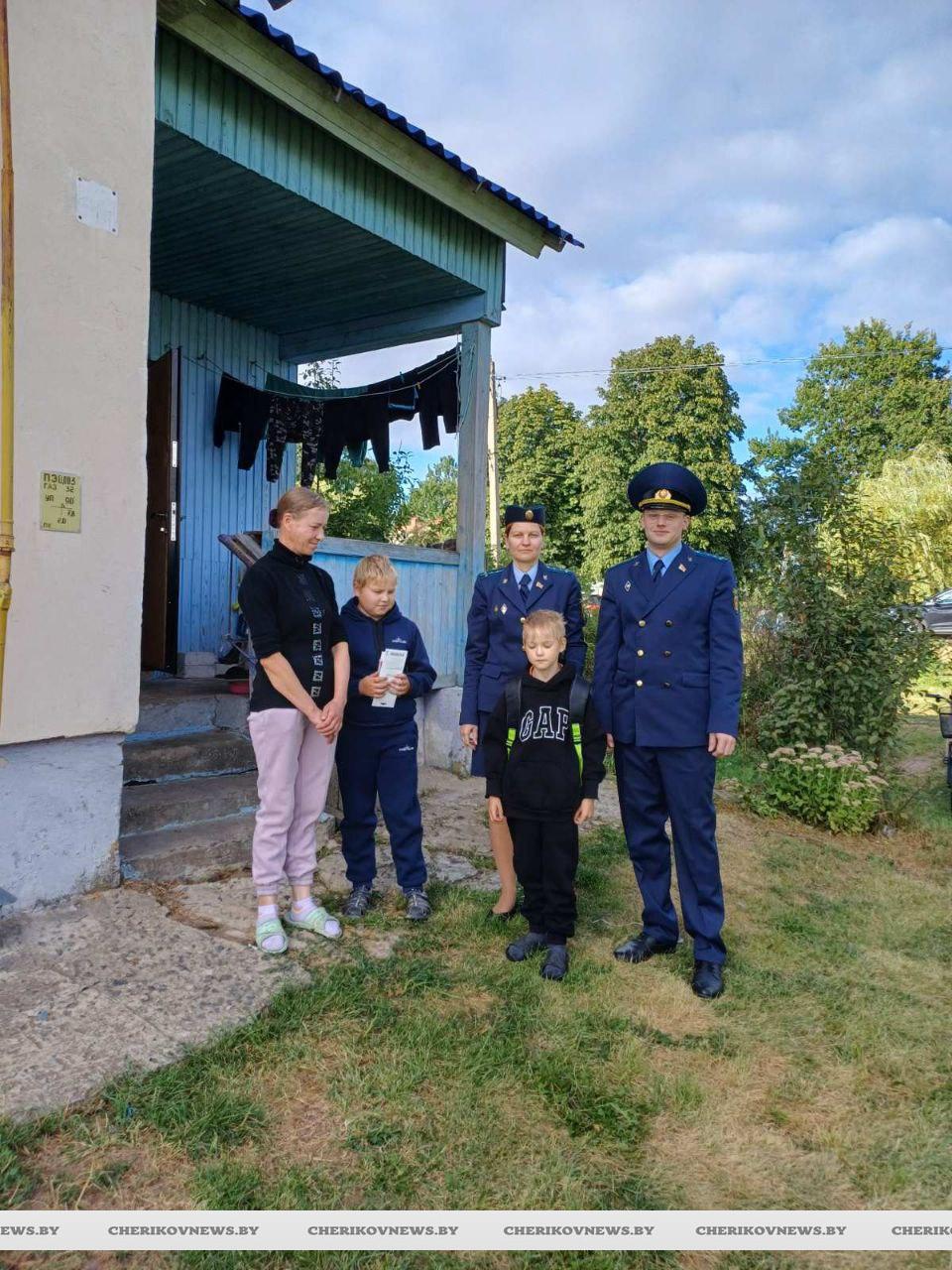 На уходящей неделе к акции присоединился коллектив прокуратуры Чериковского района. 26 августа заместитель прокурора Валерий Якимов и помощник прокурора Татьяна Овчинникова посетили семью чериковлян Аврамовых, где воспитывается двое школьников. Младший сын Александр в этом году станет второклассником, а старший Николай пойдет в 4 класс.