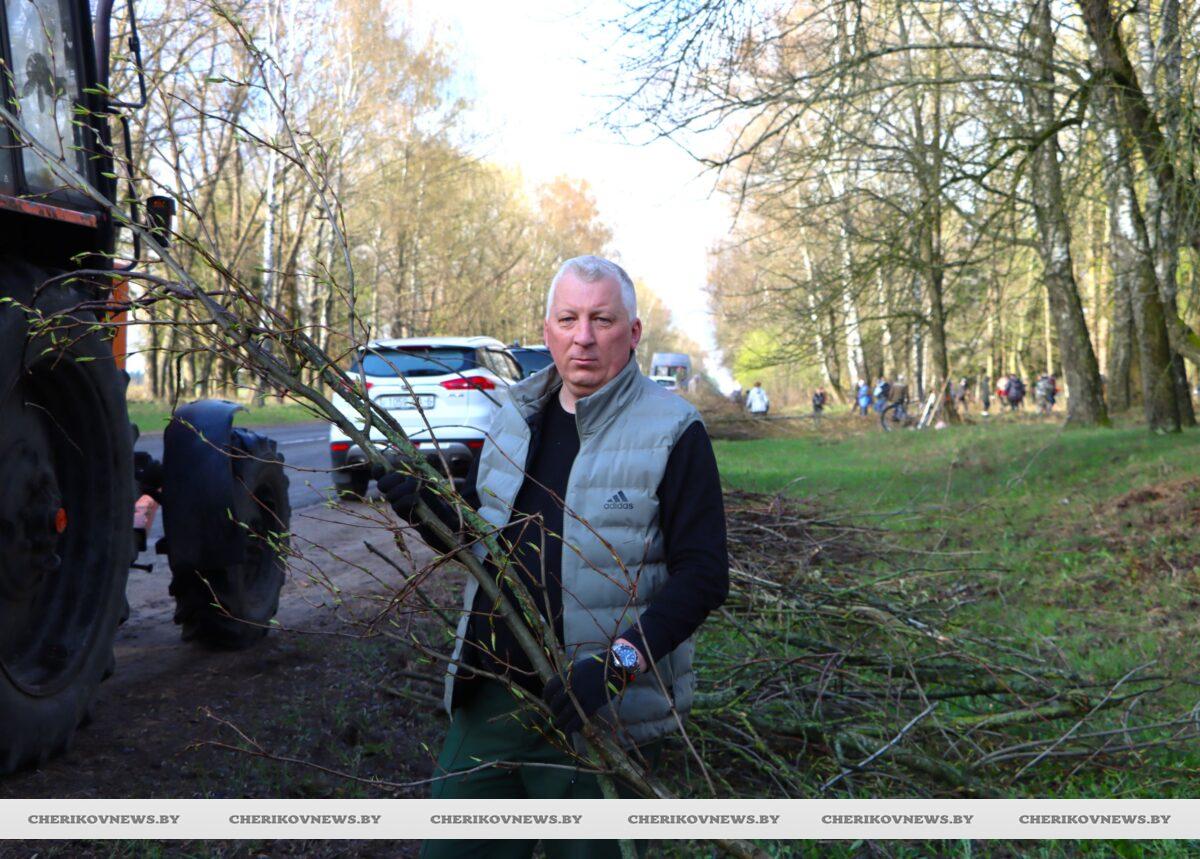 Более 200 человек во главе с председателем Чериковского райисполкома Алексеем Жерносековым работали вдоль трассы Чериков — Славгород. Дружно и с настроением высекали поросль, убирали поваленные деревья и мусор вдоль дороги. К слову, на минувшей неделе вдоль этой же трассы коллектив Чериковского лесхоза удалил аварийные деревья, произвел распиловку поваленных, наклонившихся и аварийных деревьев. Фронт работ был сделан немалый.