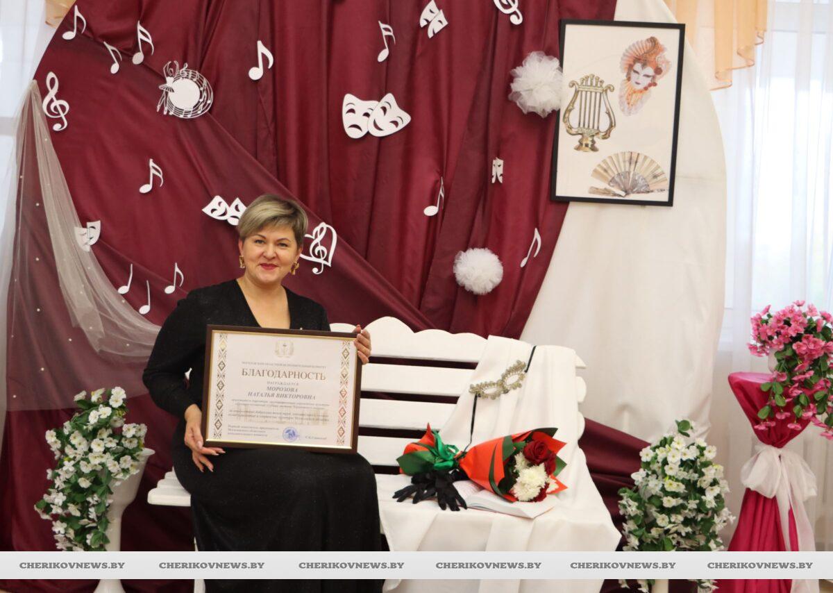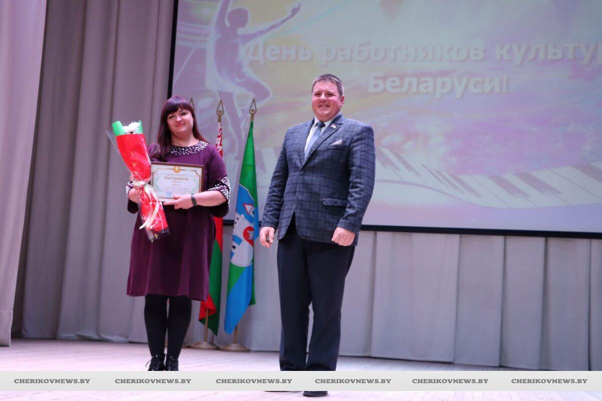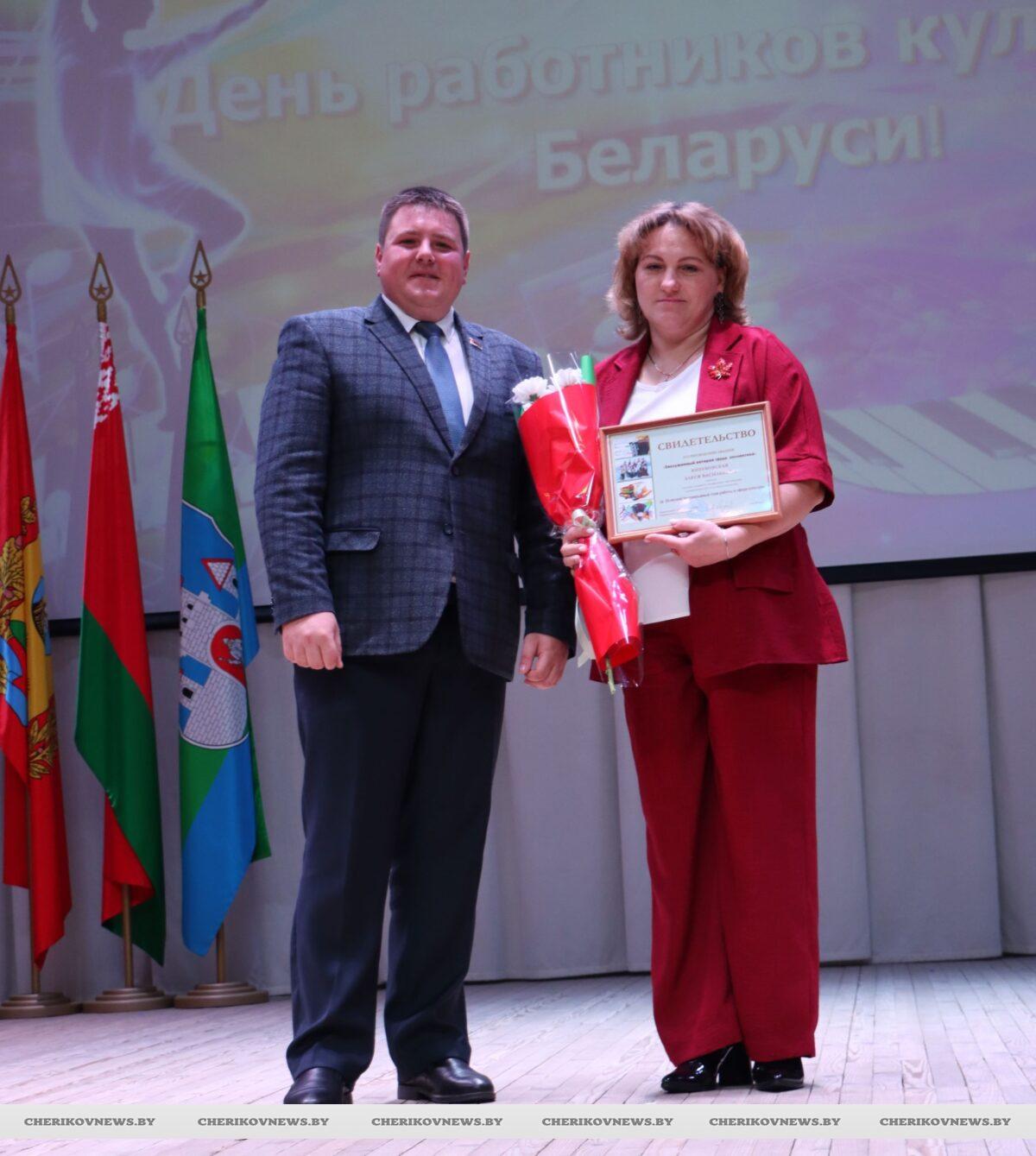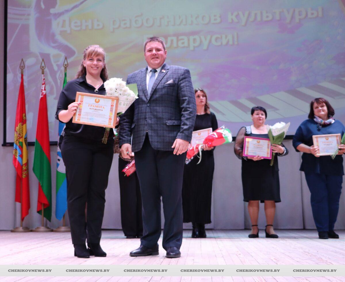 — Сегодня наши земляки достойно представляют свои таланты, продолжая своими достижениями писать уникальную летопись родного края. Чериковская земля богата талантами. Хочу поблагодарить вас за тот непростой труд, который вы делаете повседневно, за ваш профессионализм, творчество и креативность, силу, стойкость духа. Вы все одна большая команда и нет такого праздника, который вам не по плечу. Мы наслаждаемся творчеством, которое вы дарите зрителям. Оно прославляет наш город далеко за его пределами, — сказал глава района Алексей Владимирович. — Мы по праву гордимся творческими достижениями работников районного Дома культуры, музея, библиотек, школ искусств, районного Дома ремесел, сельских учреждений культуры.