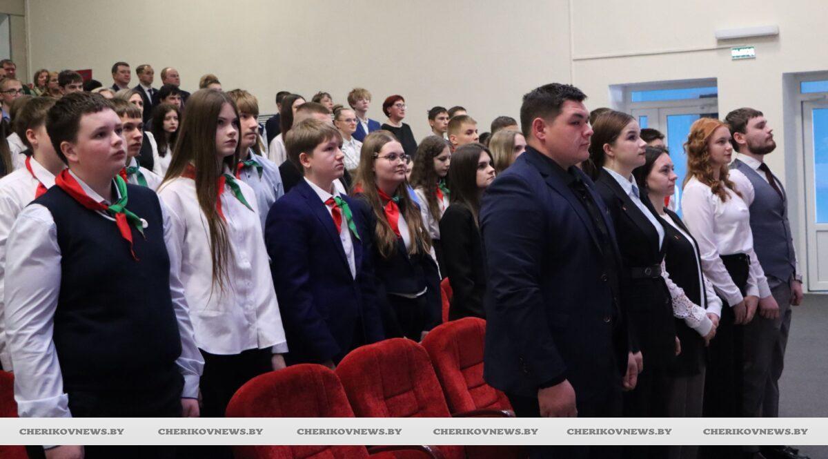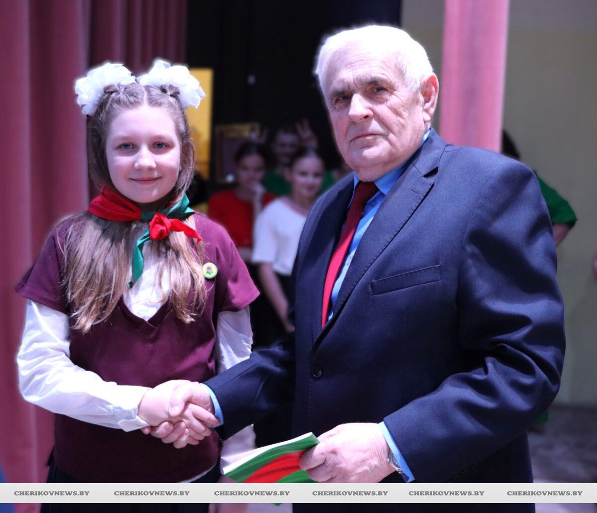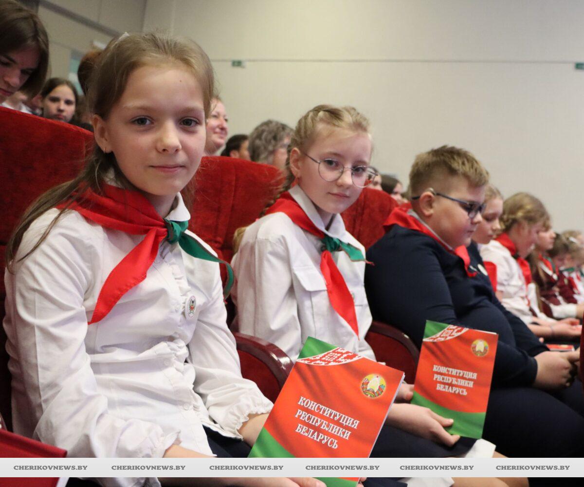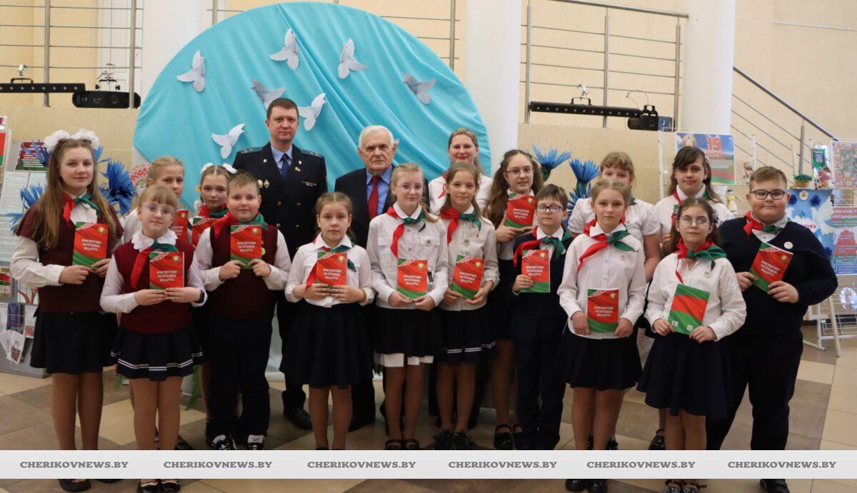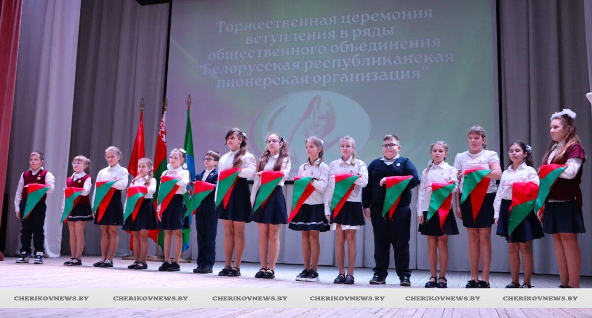 Право повязать пионерские галстуки и вручить Конституции Республики Беларусь предоставили почетным гостям — председателю Чериковского районного исполнительного комитета Алексею Жерносекову, Почетному гражданину Чериковского района Андрею Васильевичу Медведеву, прокурору Чериковского района Дмитрию Галалобову, первому секретарю Чериковской районной организации Коммунистической партии Беларуси Александру Осипенко, председателю Чериковской районной организации Либерально-демократической партии Беларуси Анне Сюбаевой, председателю партии труда и справедливости Александру Цикунову. Завершилась церемония повязывания галстуков пионерской клятвой.
