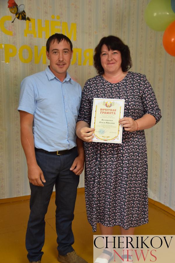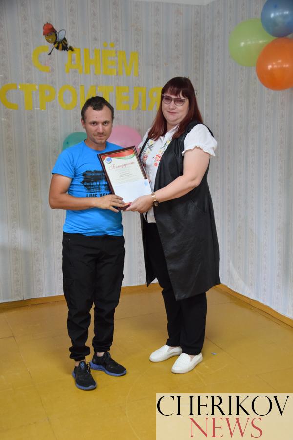 Почетных грамот предприятия удостоены тракторист Виктор Щавликов, бухгалтер Ольга Волошенко, штукатур Татьяна Семенова, юрисконсультант Елена Бондарь, штукатур Михаил Ермаков. Также Грамоту от Чериковской ПМК Денис Витальевич вручил ветерану труда — Александру Алексеевичу Головневу.