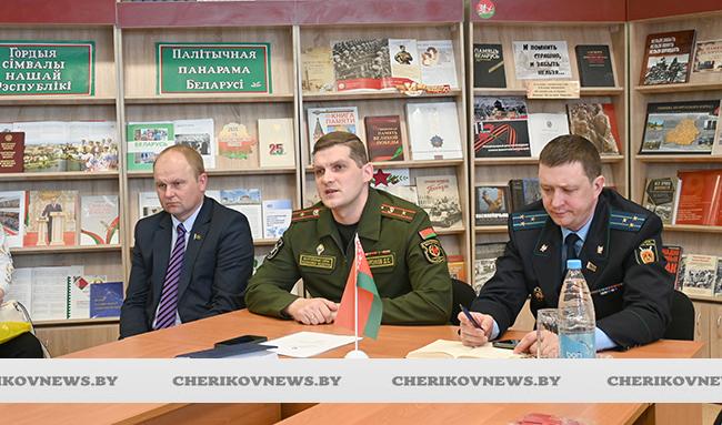 Спикерами на мероприятии выступили прокурор Чериковского района Дмитрий Галалобов, военный комиссар Чериковского и Краснопольского районов Дмитрий Барсуков, директор Лобановской базовой школы, первый секретарь районной организации КПБ Александр Осипенко, главный специалист отдела идеологической работы и по делам молодежи райисполкома Марта Черникова.