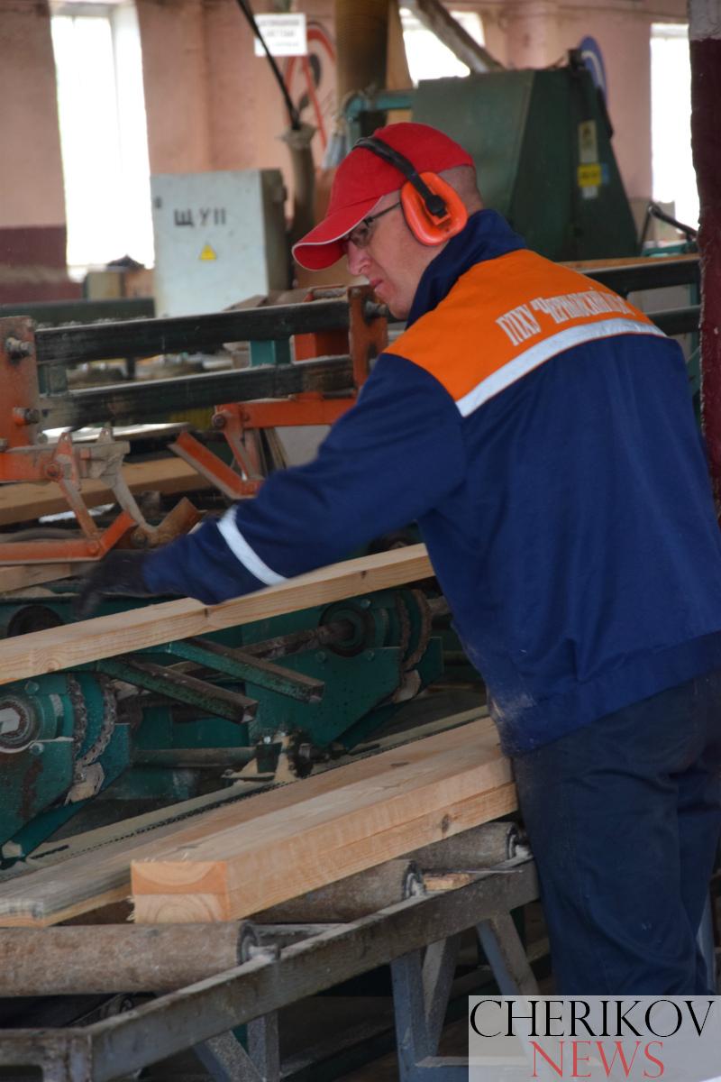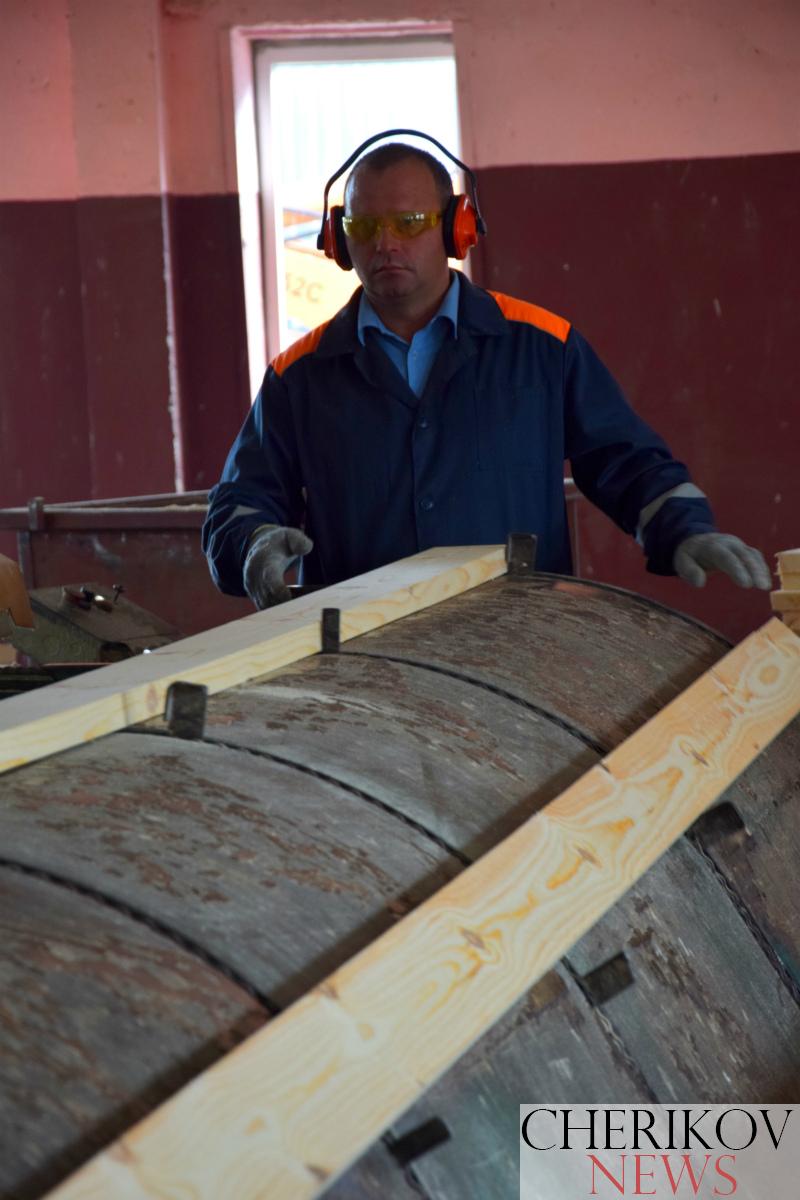 В среде хозяек, которые имеют свои приусадебные участки существует мнение, что мало вырастить урожай, главное его собрать, переработать, сохранить и пустить на пользу… Об этом подумалось, когда нога ступила на территорию еще одного стратегически значимого места для ГЛХУ «Чериковский лесхоз» — цеха по переработке древесины, который расположен в деревне Гронов. Именно здесь часть работников лесхоза (54 человека), как заботливые хозяева, делают все, чтобы выращенный в лесу «урожай» пошел на пользу, именно здесь реализуются все планы учреждения по «перевоплощению» леса-«кругляка» в различные пиломатериалы — доску пола, вагонку, блокхаус, а с прошлого года еще в несколько новых видов продукции — щепу топливную и кол окоренный. Последние новшества связаны с планами лесхоза по освоению переработки тонкомерной и низкосортной древесины и расширению спектра выпускаемой продукции.