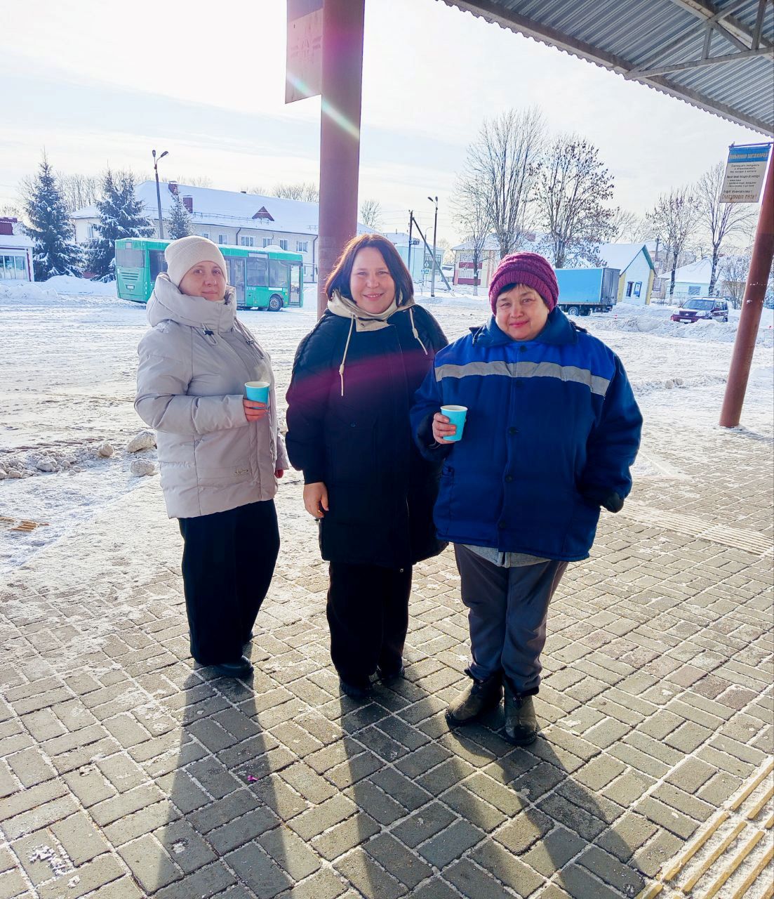 Водители и другие работники, обеспечивающие бесперебойное движение транспорта, получили горячий чай.  Горячий чай в мороз закончился быстро, а вот чувство общей благодарности и сопричастности к большому и важному делу, несомненно, останется надолго. Акция продолжается.