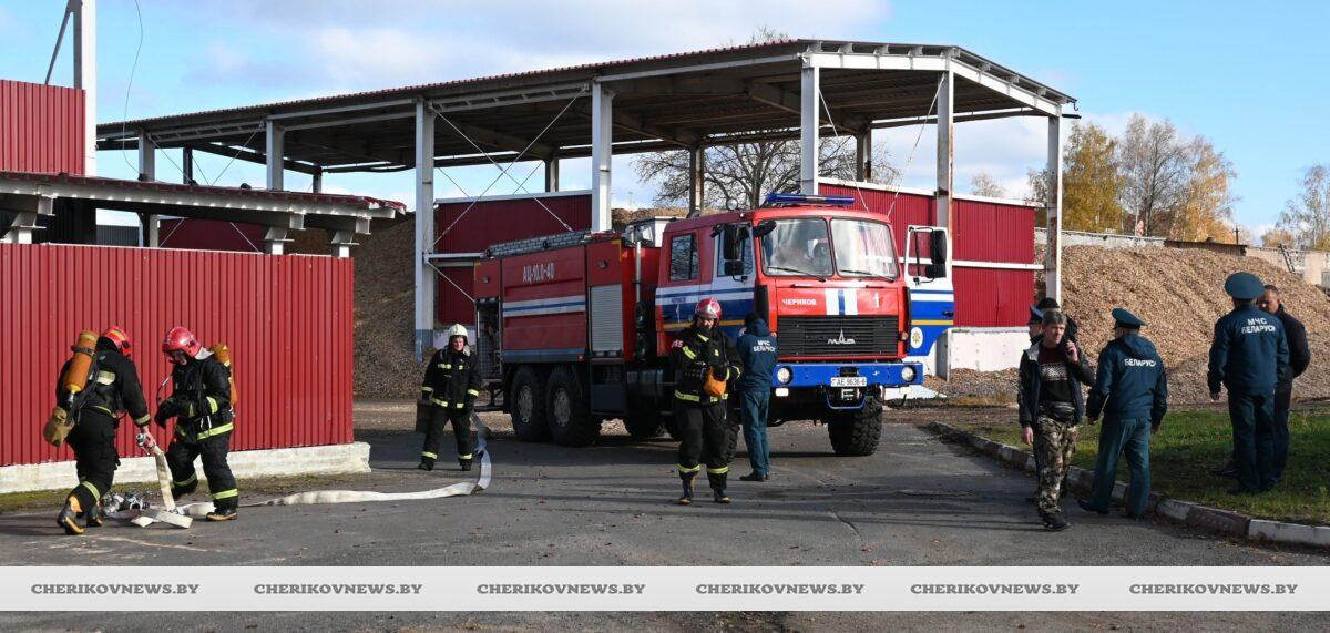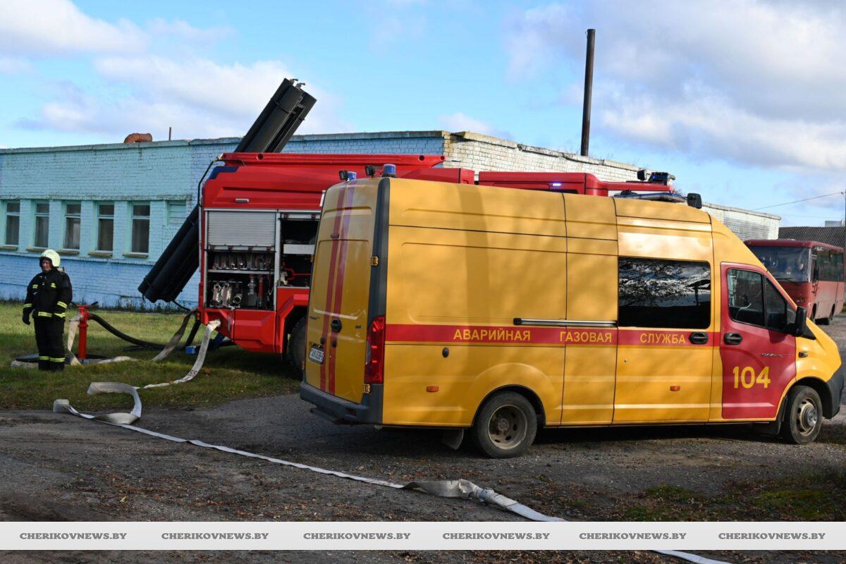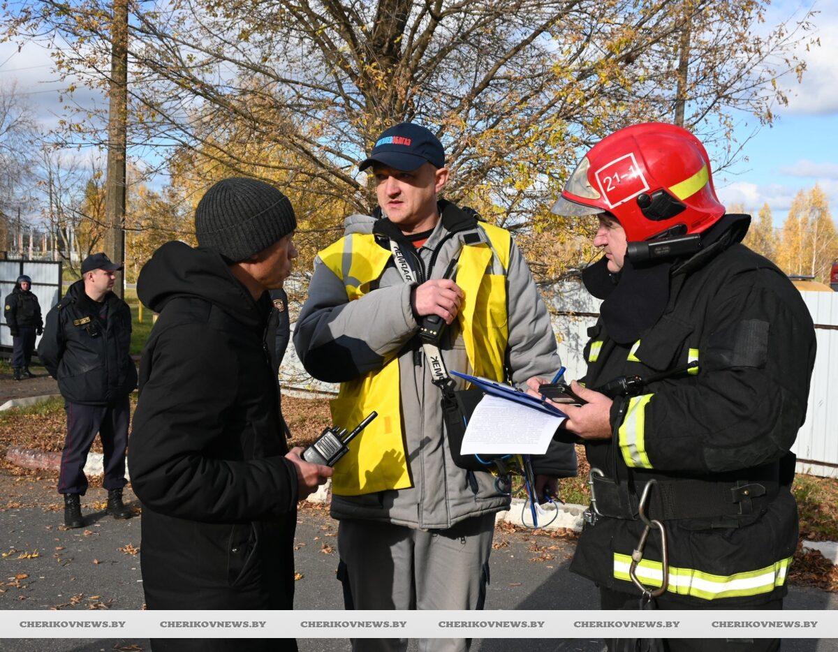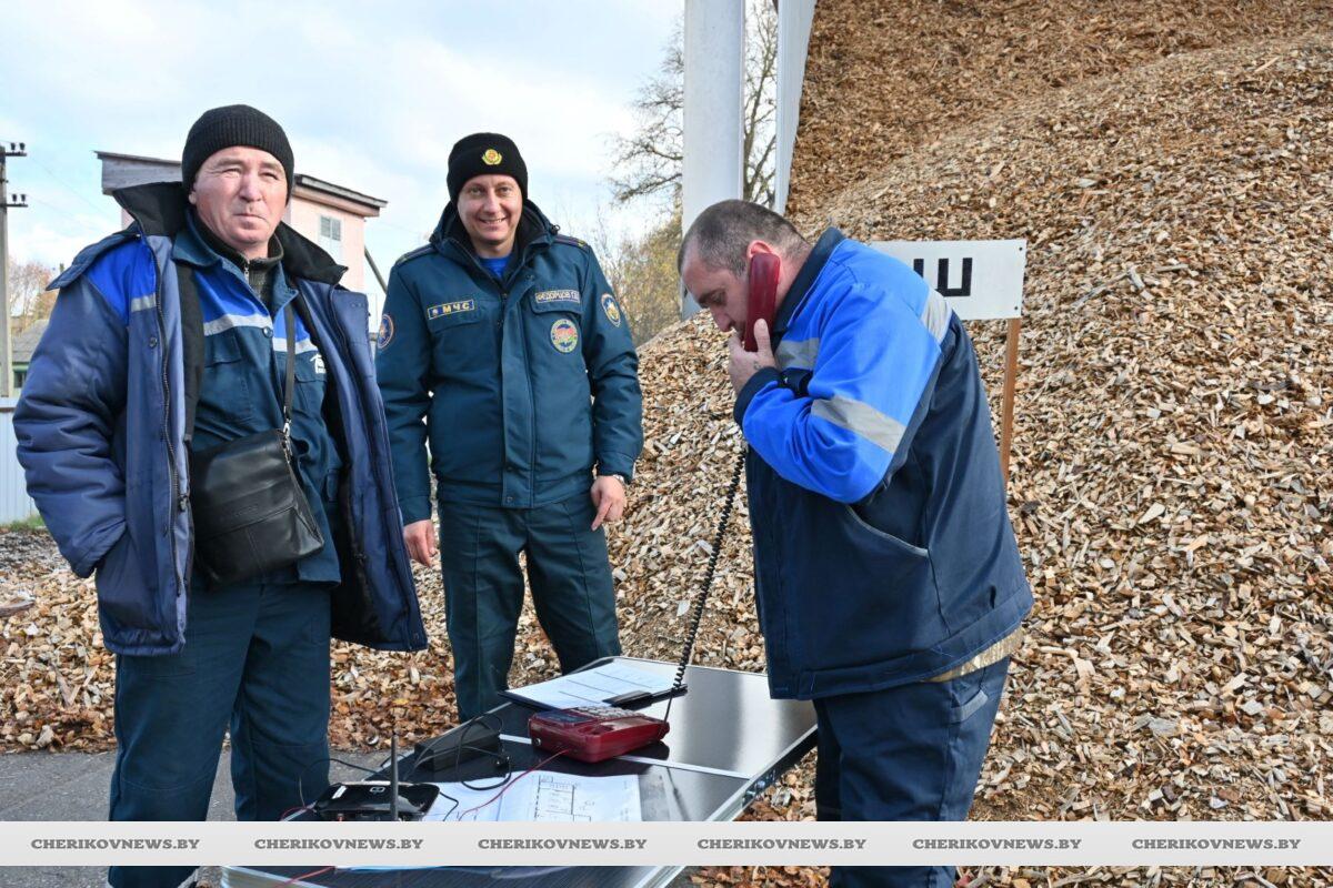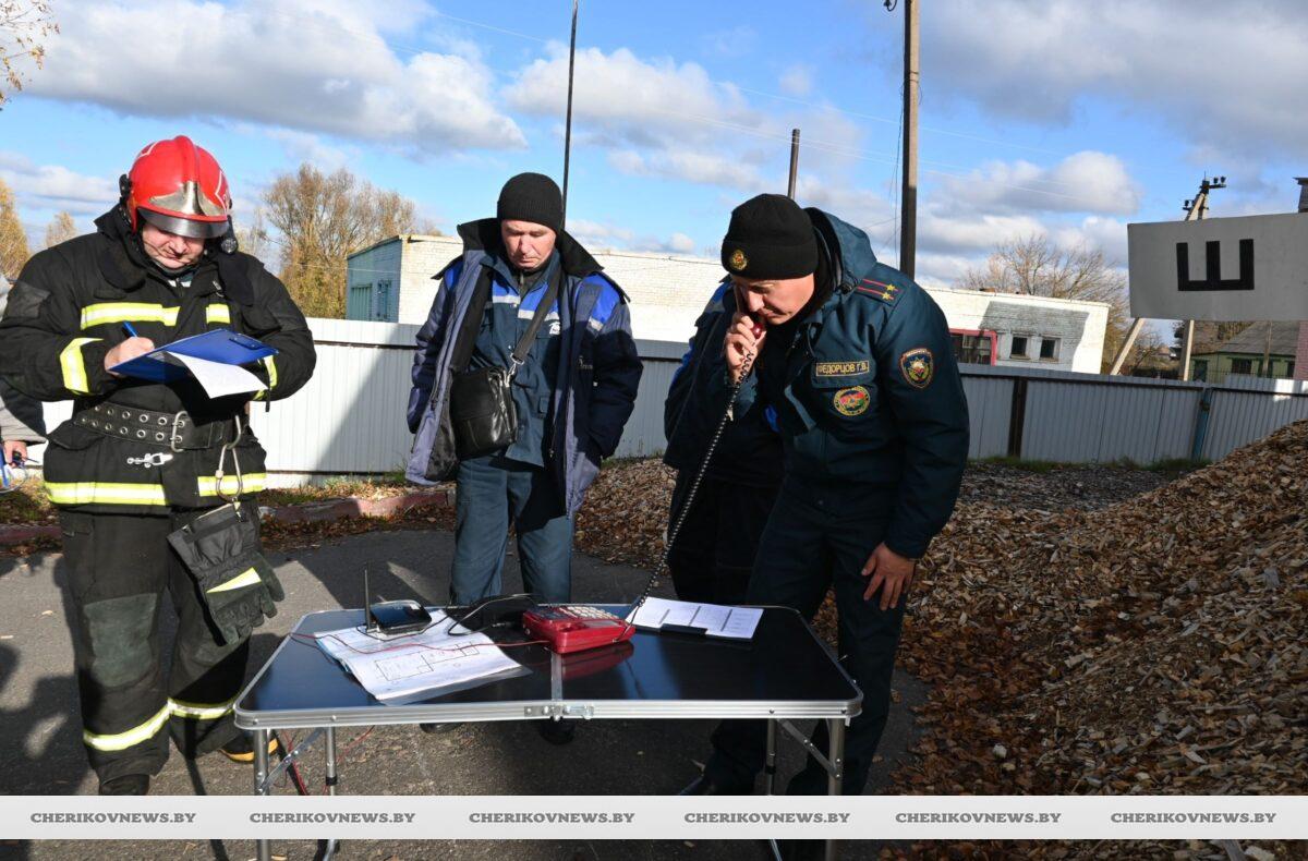 На заседании комиссии по чрезвычайным ситуациям при Чериковском райисполкоме прошла отработка теоретических вводных. Первая практическая вводная проходила на котельной «Центральная», расположенной в городской черте Черикова. По легенде в результате нарушения технологического процесса произошел взрыв котла, что привело к разрушению части строительных конструкций. В результате взрыва произошла утечка газовоздушной смеси с последующим ее возгоранием. Также в результате взрыва повреждена линия электропередач, произошло отключение электроэнергии.