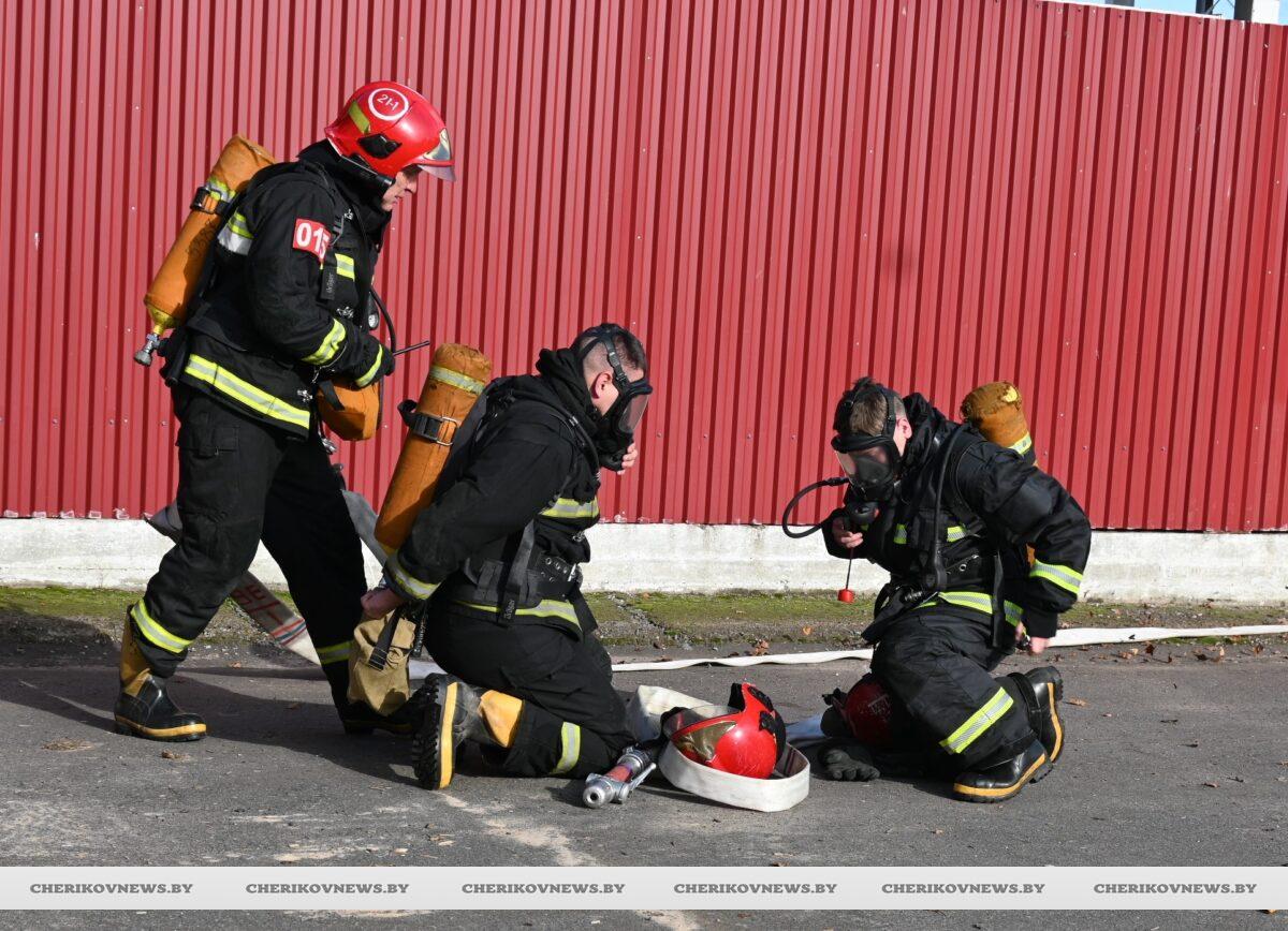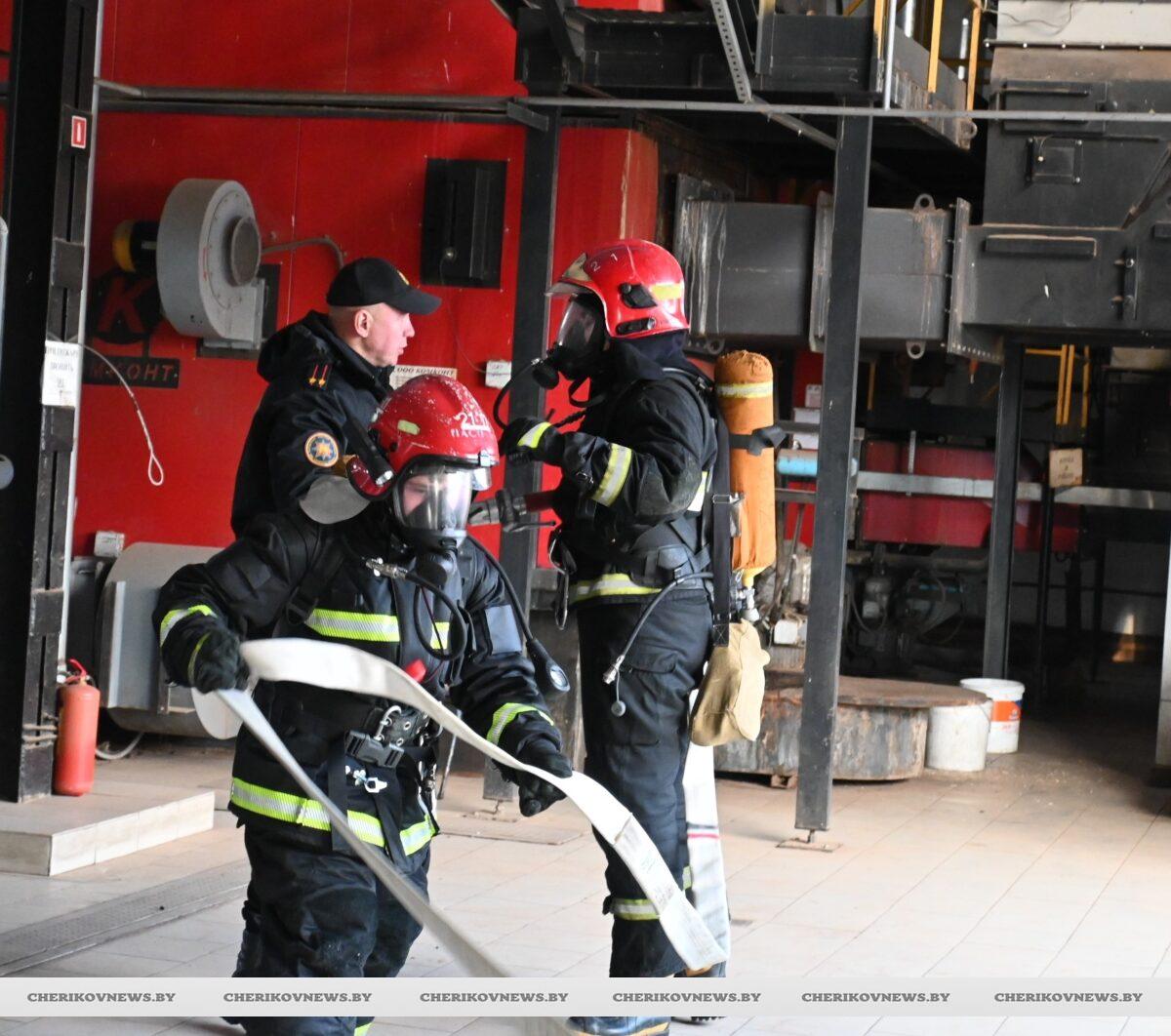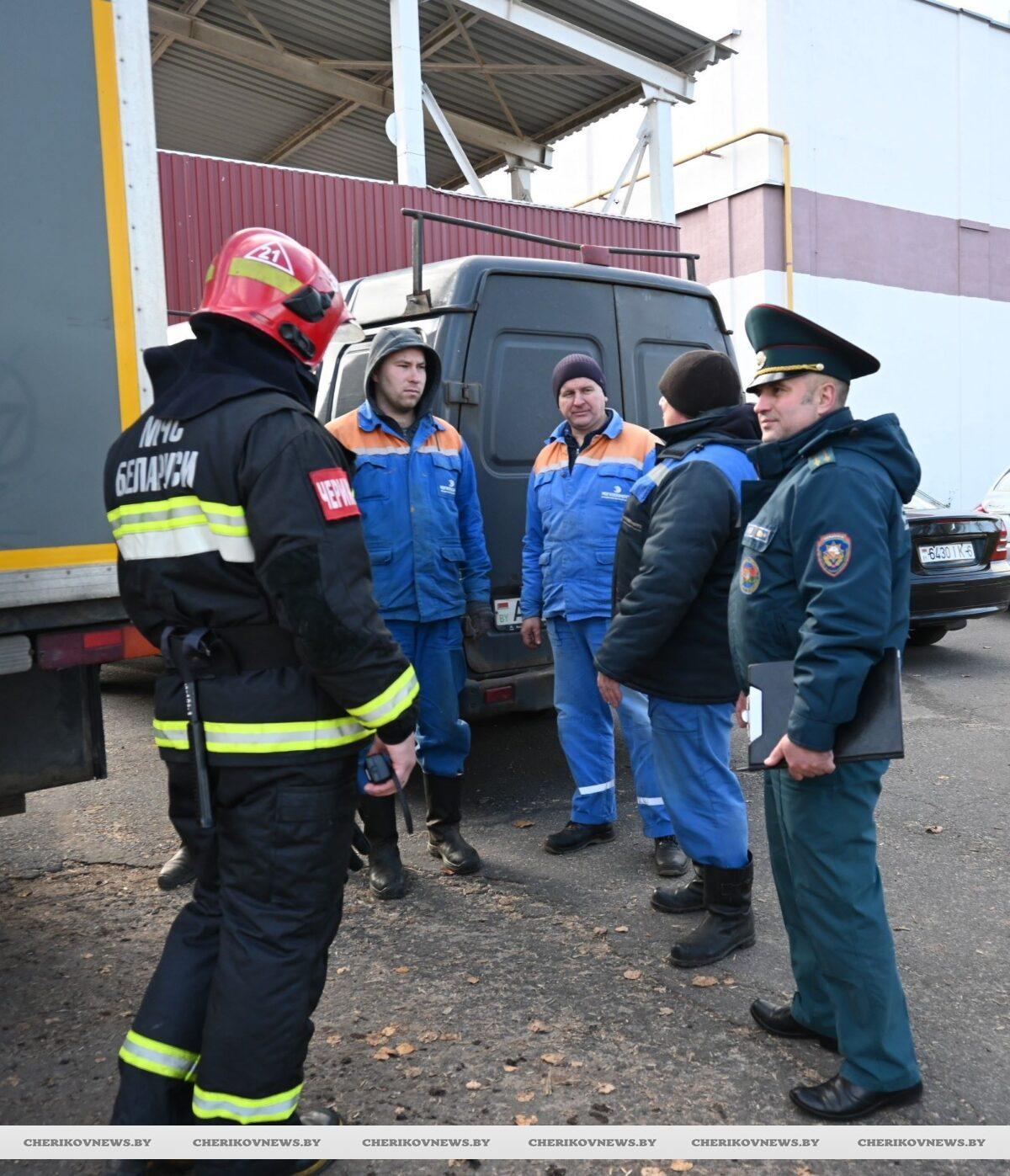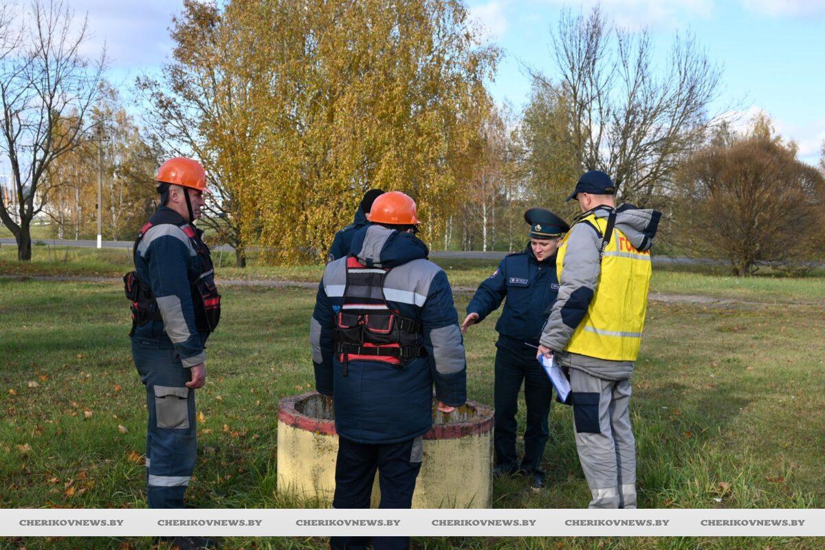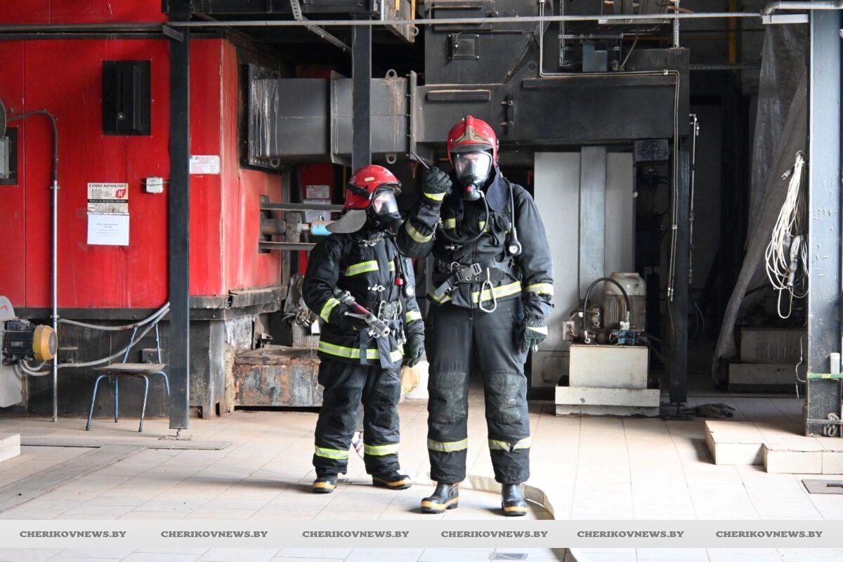 На заседании комиссии по чрезвычайным ситуациям при Чериковском райисполкоме прошла отработка теоретических вводных. Первая практическая вводная проходила на котельной «Центральная», расположенной в городской черте Черикова. По легенде в результате нарушения технологического процесса произошел взрыв котла, что привело к разрушению части строительных конструкций. В результате взрыва произошла утечка газовоздушной смеси с последующим ее возгоранием. Также в результате взрыва повреждена линия электропередач, произошло отключение электроэнергии.
