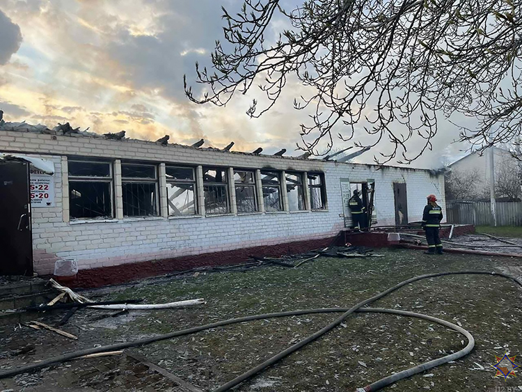 Работники МЧС ликвидировали пожар магазина и кафетерия в агрогородке Майский Чериковского района