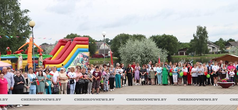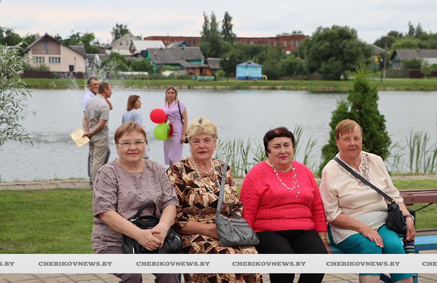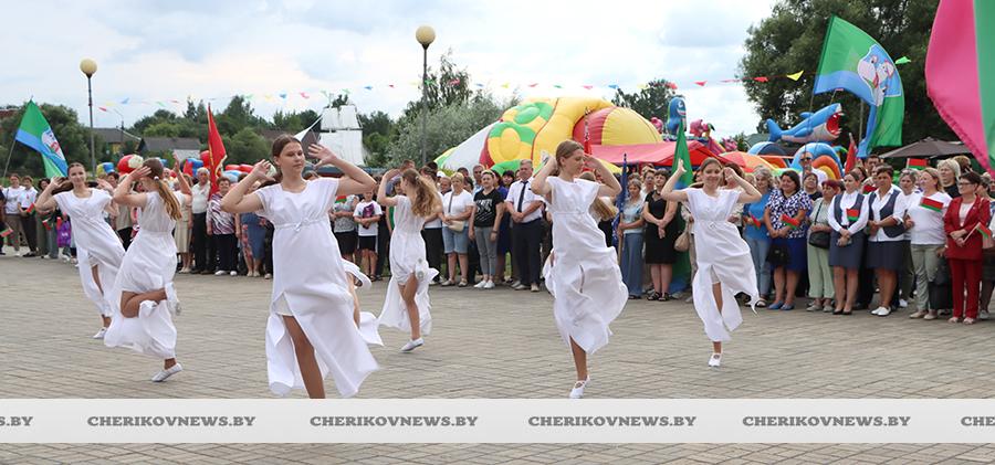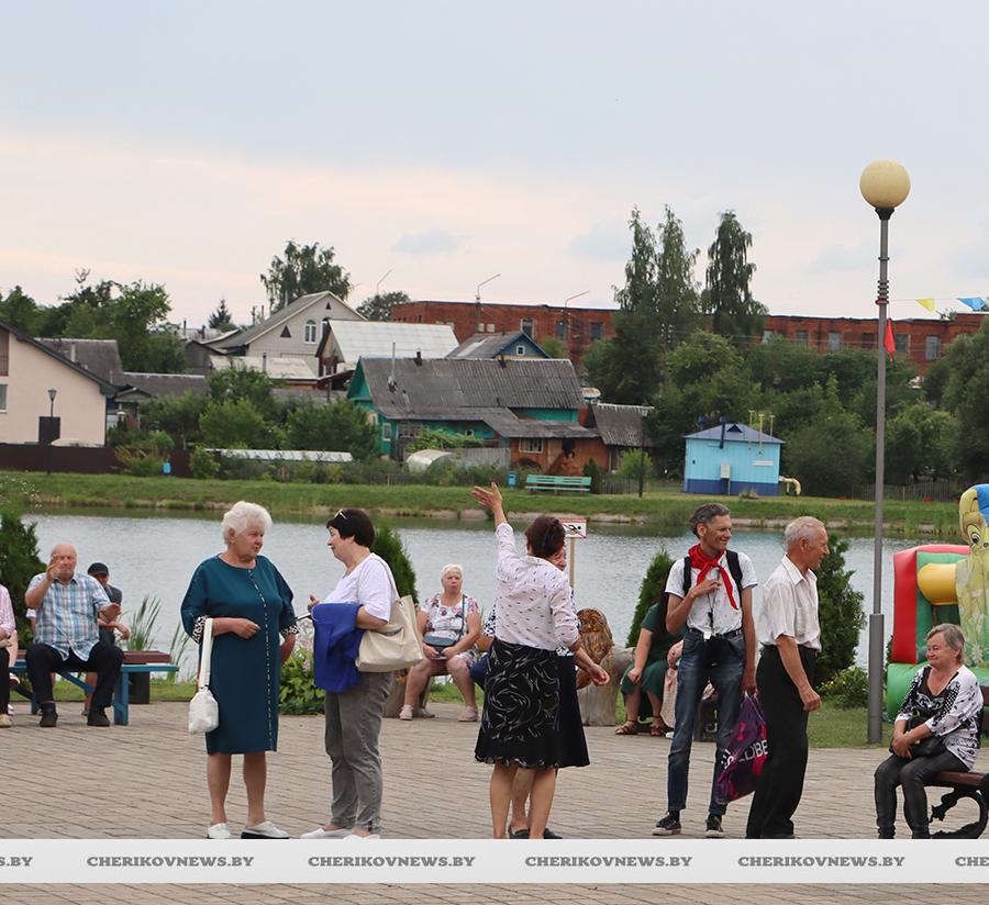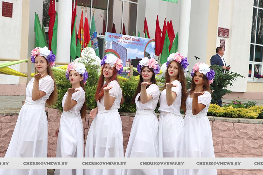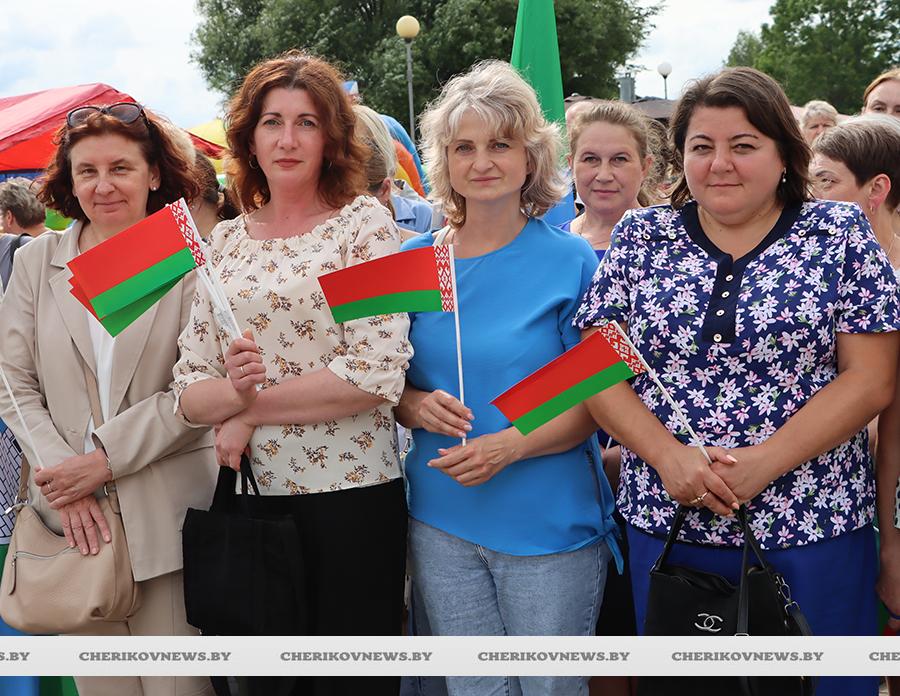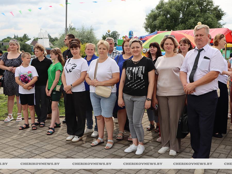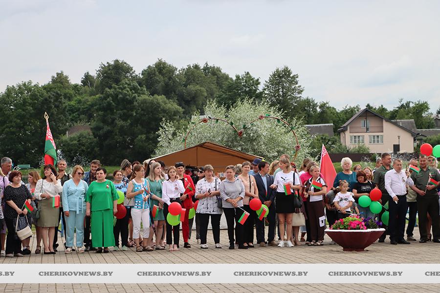 Чериков – это место, где встречаются история и современность, где сочетаются традиции и инновации. Это замечательный городской пейзаж, где сливаются воедино многоэтажки и уютные улочки частного сектора, где с окон открывается прекрасный на вид на озера или реку Сож, радуют взор хлебные поля, где беззаботно играют дети на обновленных детских площадках, занимаются  спортом на современных спортивно-игровых комплексах, кружат аисты, улицы украшают цветочные композиции, а по утрам слышны трели соловья.   Гуляя по улицам, глядя на улыбающиеся лица горожан, понимаешь, что здесь люди поистине счастливы, да и на площадке царила праздничная атмосфера.