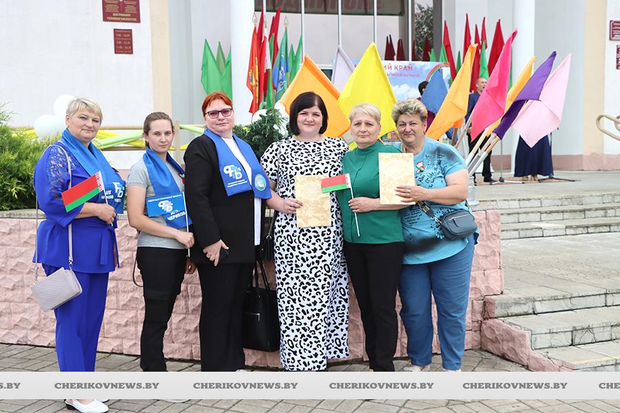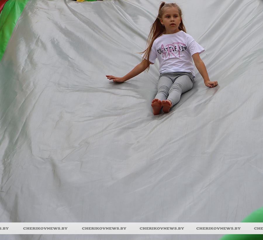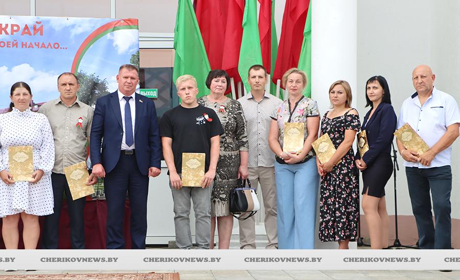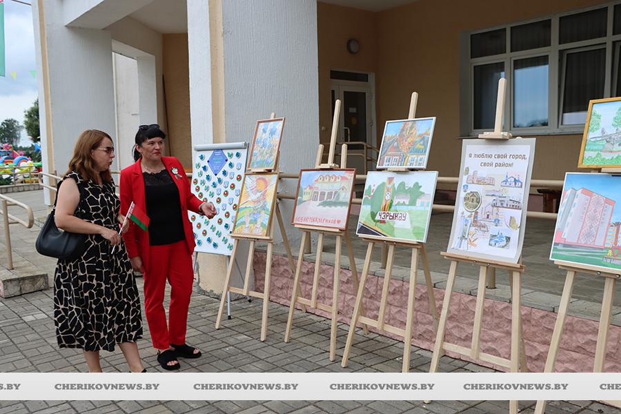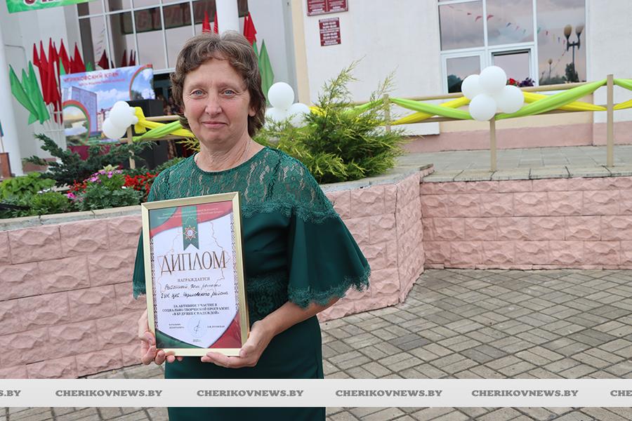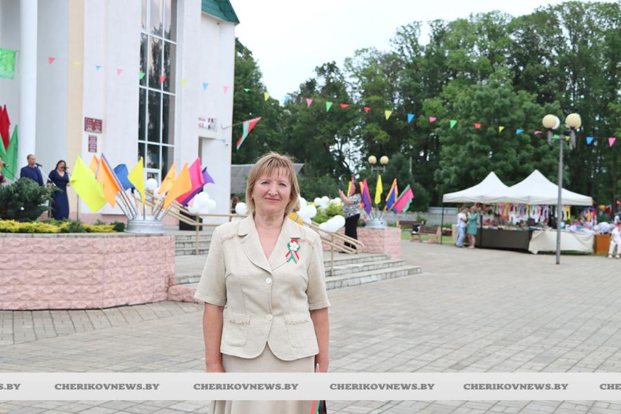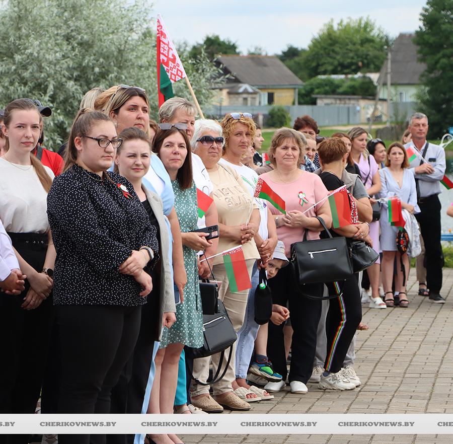 Чериков – это место, где встречаются история и современность, где сочетаются традиции и инновации. Это замечательный городской пейзаж, где сливаются воедино многоэтажки и уютные улочки частного сектора, где с окон открывается прекрасный на вид на озера или реку Сож, радуют взор хлебные поля, где беззаботно играют дети на обновленных детских площадках, занимаются  спортом на современных спортивно-игровых комплексах, кружат аисты, улицы украшают цветочные композиции, а по утрам слышны трели соловья.   Гуляя по улицам, глядя на улыбающиеся лица горожан, понимаешь, что здесь люди поистине счастливы, да и на площадке царила праздничная атмосфера.