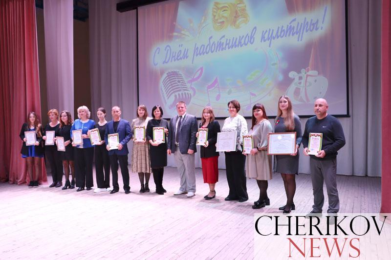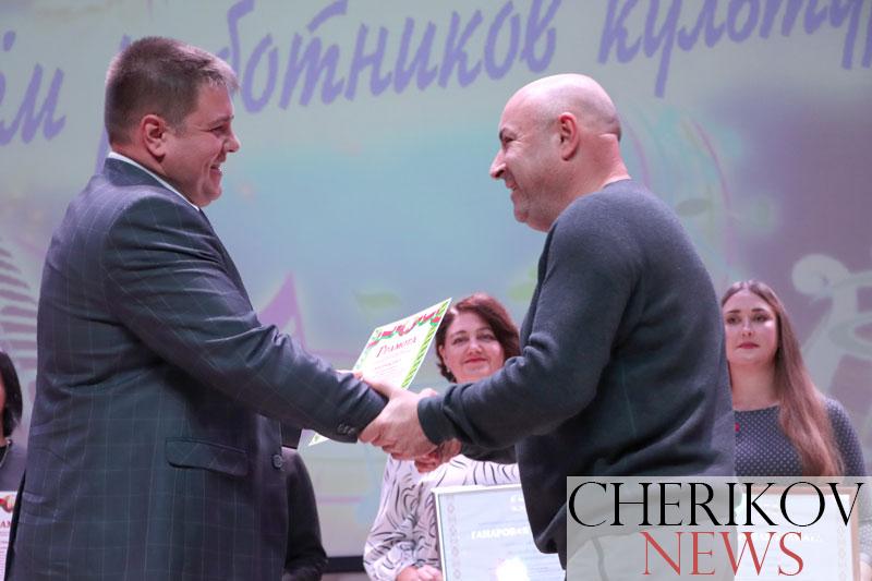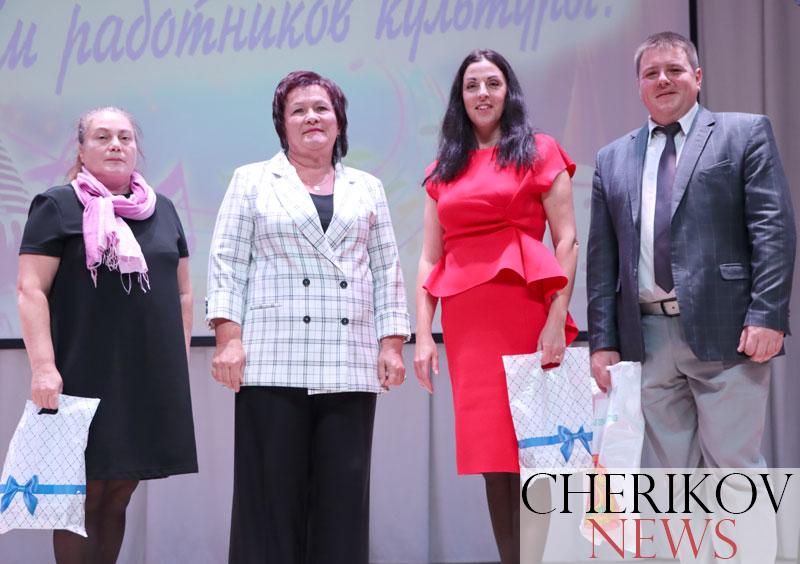Многочисленные поздравления в свой адрес они услышали от заведующего сектором культуры Чериковского райисполкома Александра Шараева, директора ГУК «Централизованная клубная система Чериковского района» Юлии Астапенко, директора ГУК «Централизованная библиотечная сеть Чериковского района» Тамары Галюто, диреткора УК «Чериковский историко-краеведческий музей» Екатерины Германьевой. Ряду представителей сферы были вручены Почетные грамоты, грамоты, благодарности различных уровней. Цветы в знак уважения и признательности за многолетний и плодотворный труд были преподнесены ветерану, долгое время курировавшему сферу культуры в районе, — Екатерине Каркозовой.