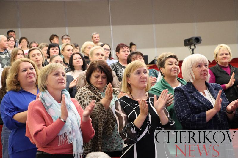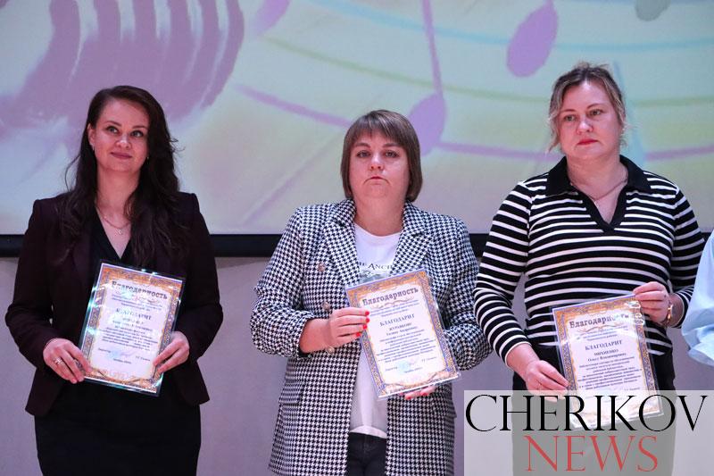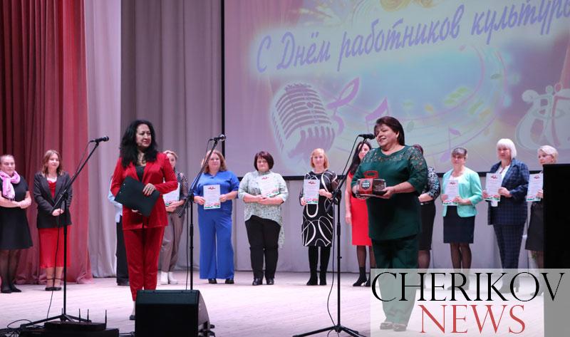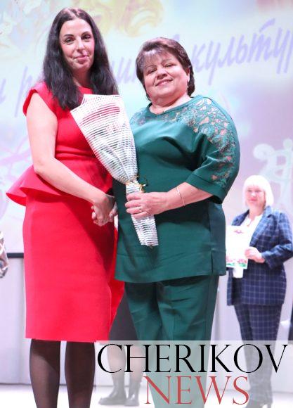 Благодарность работникам культуры за тесное и плодотворное сотрудничество звучала из уст председателя Чериковской районной ветеранской организации Любови Укроженко. Любовь Ивановна преподнесла памятные сувениры руководителям коллективов, а также со сцены с юбилейной датой поздравила ветерана труда, которая более 40 лет отдала своей работе, обладающую необыкновенным музыкальным талантом, — Елену Беляеву. Весь зрительный зал поздравил Елену Николаевну с круглой личной датой громкими аплодисментами и дружными возгласами «С днем рождения».
