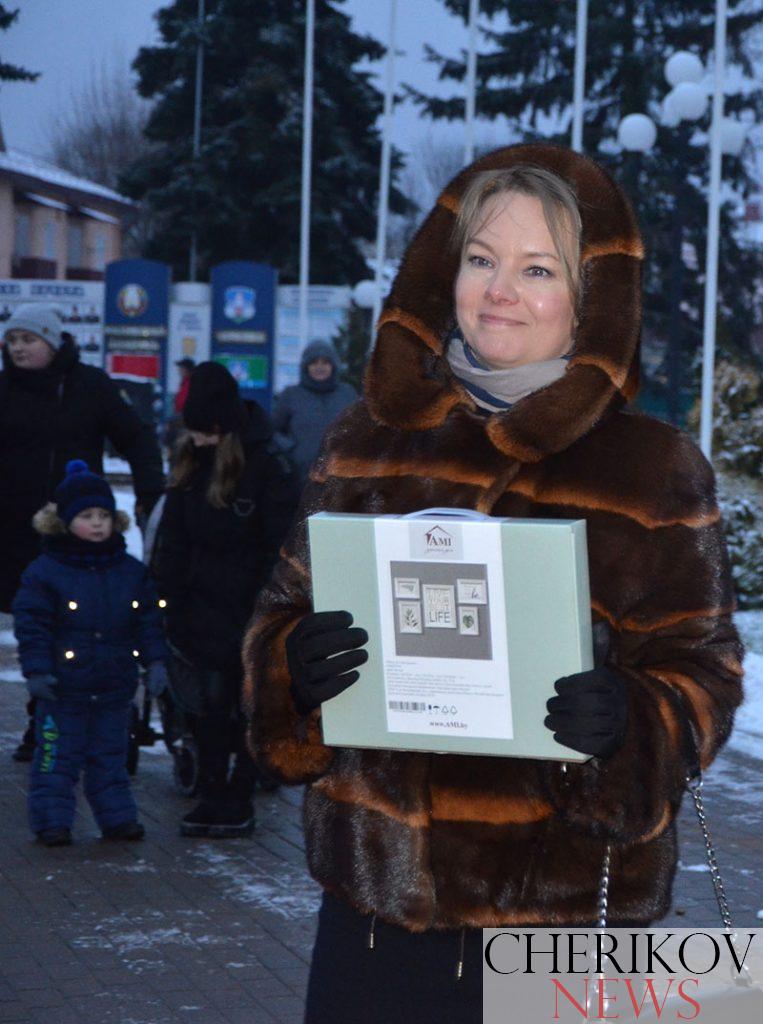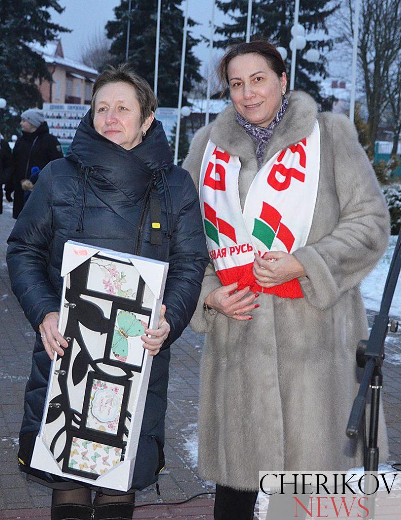 Но вот из-за поворота через дорогу от площади показалась праздничная колонна, которая под звуки оркестра прошествовала по городской площади. Детям уже не терпелось поскорее взять за руки любимых героев, поводить с ними хороводы и сделать фото на память. Однако этому теплому моменту предшествовал другой, не менее важный. В этот день были награждены те организации и предприятия, которые подарили жителям и гостям города ощущение праздника: украсили свои административные здания и прилегающую к ним территорию и тем самым приняли участие в районном смотре-конкурсе на лучшее новогоднее и рождественское оформление. Чествование провела председатель районной организации РОО «Белая Русь» Анжела Новикова.