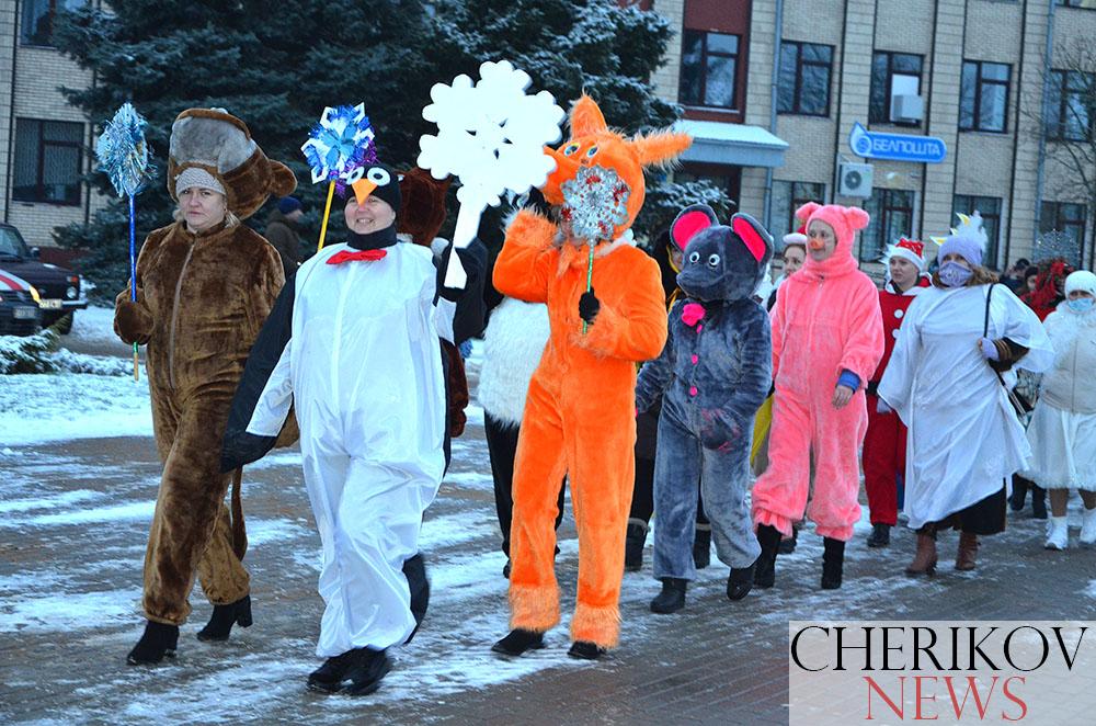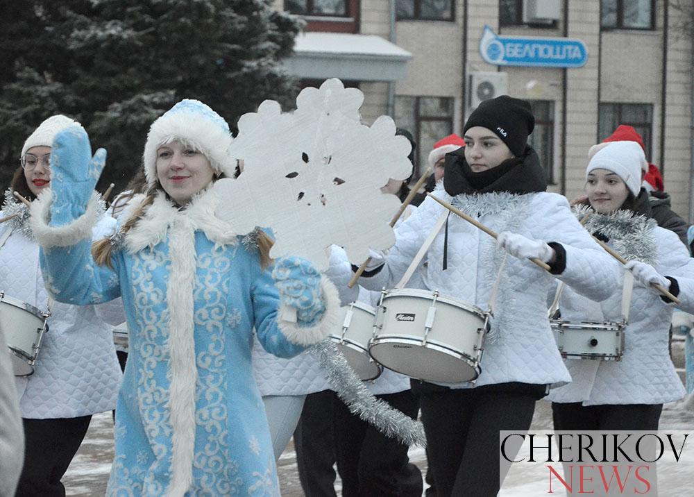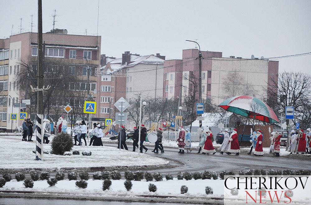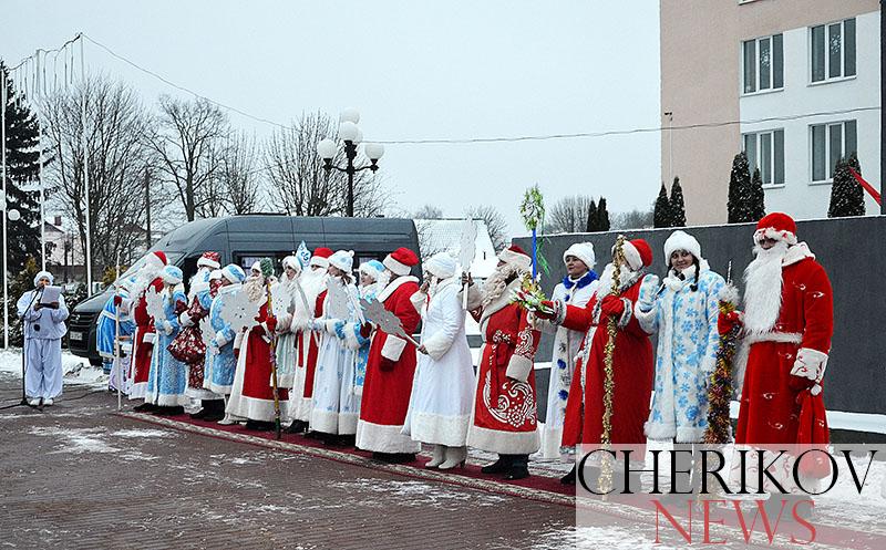 Вечер 24 декабря в Черикове был поистине сказочным, ведь здесь на главной площади города собрались Дедушки Морозы со своими внучками Снегурочками, Лисы, Медведи, Поросенок, Мышка, Пингвин, Снежинки и другие персонажи. А поводом тому послужило ставшее традиционным предновогоднее шествие Дедов Морозов с торжественным зажжением огней на главной елке района.