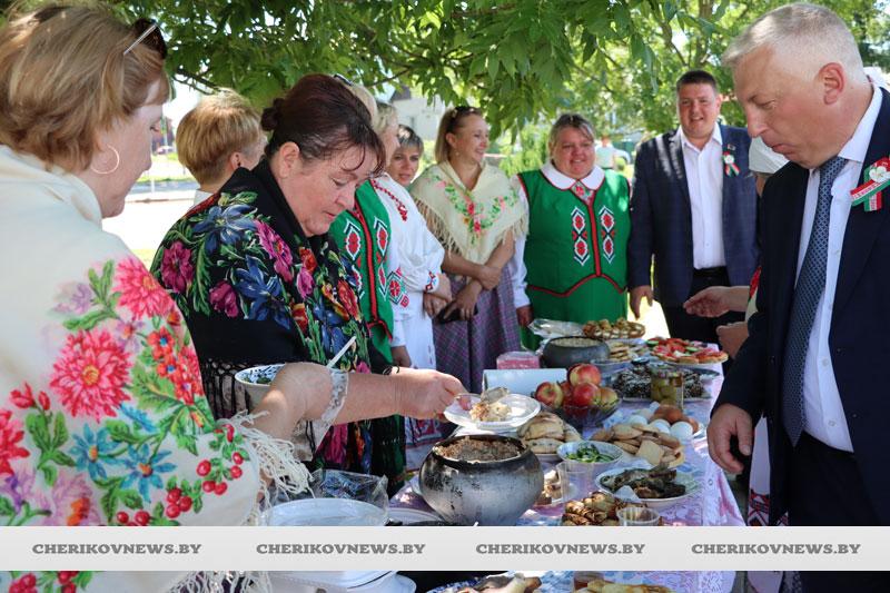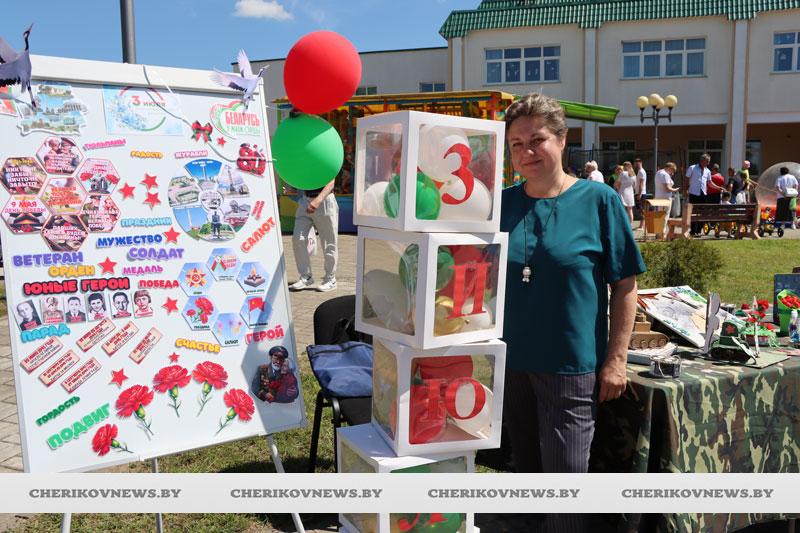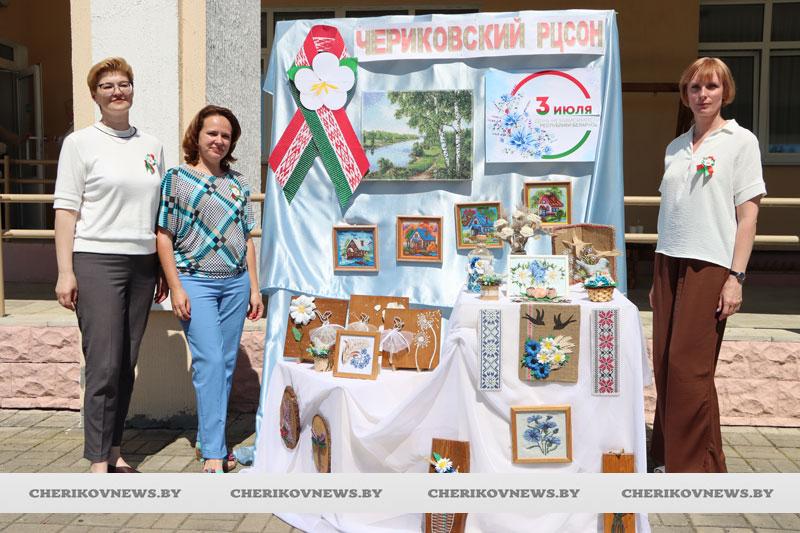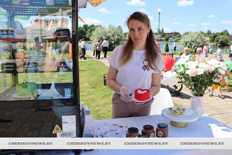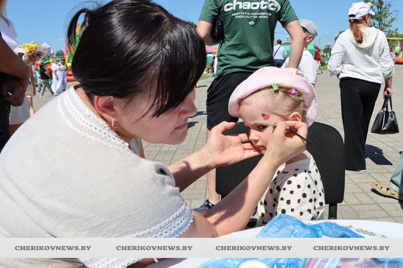 Еще одним местом праздничных гуляний в Черикове 3 июля стала площадка районного Дома культуры. Здесь развернулось огромное количество локаций: выставки, мастер-классы, фото-зоны, интерактивы, фудкорты, дегустации, аттракционы, подворки учреждений и организаций Чериковщины, концерт артистов районной сцены… Найти себе занятие по душе и по вкусу, в прямом смысле этого слова, можно было абсолютно каждому. Здесь царила настоящая атмосфера праздника!