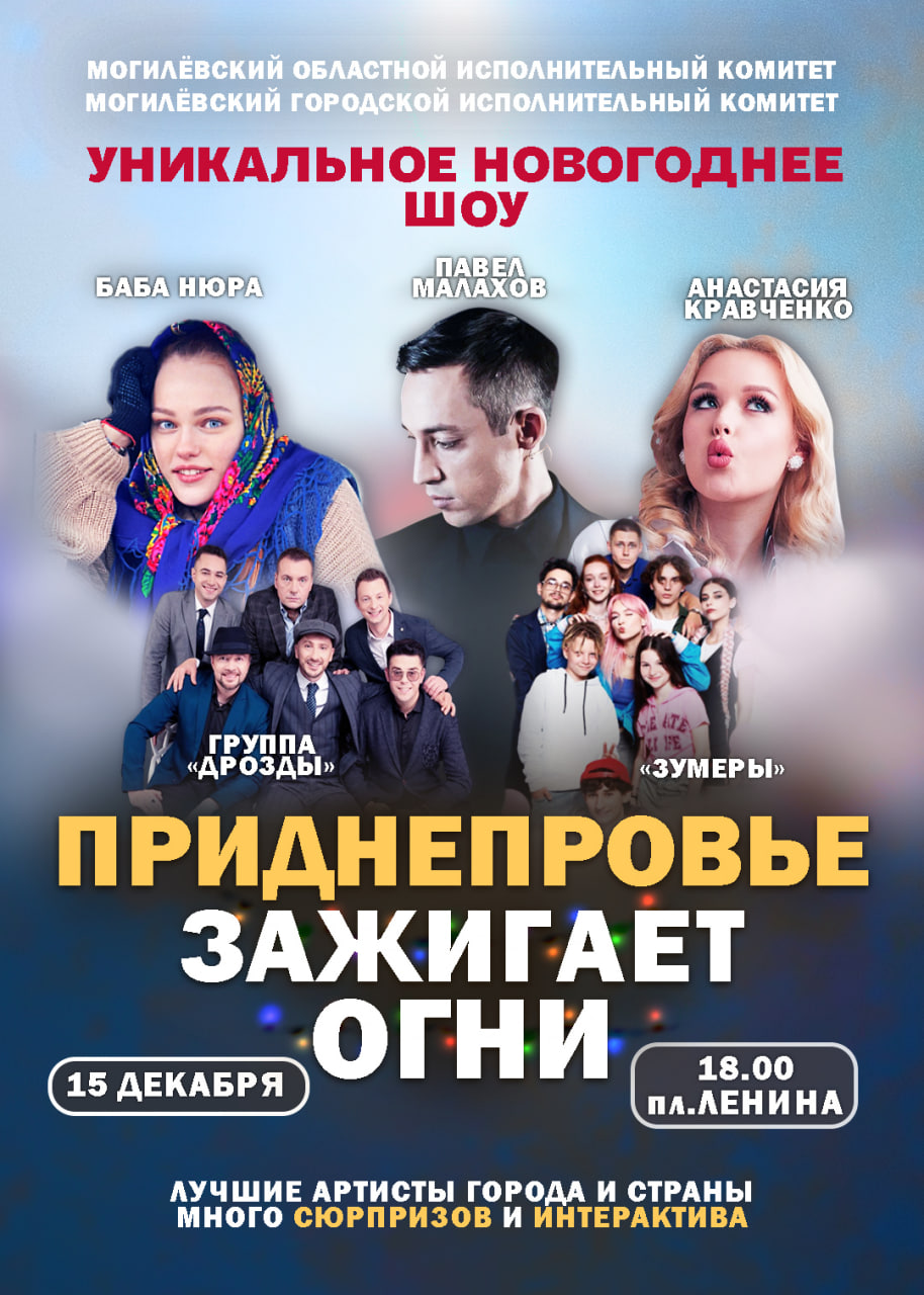 Могилев засияет ярче звезд! Ведь уже сегодня, 15 декабря, в 18:00 на площади Ленина пройдёт первое молодёжное новогоднее патриотическое шоу....