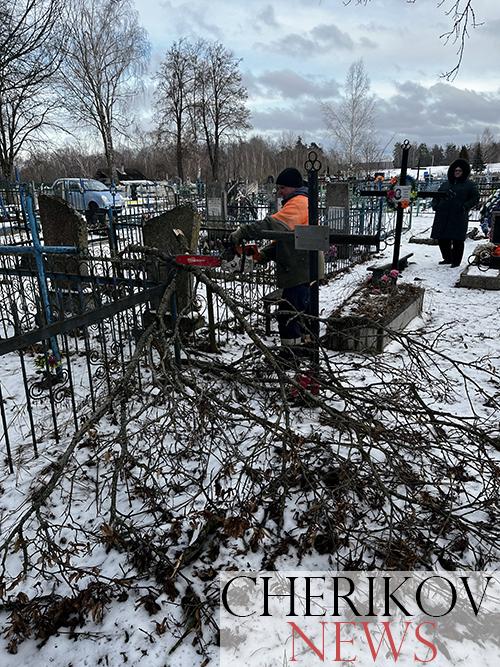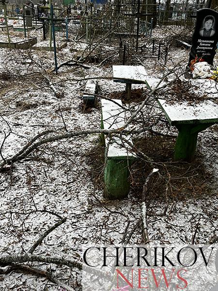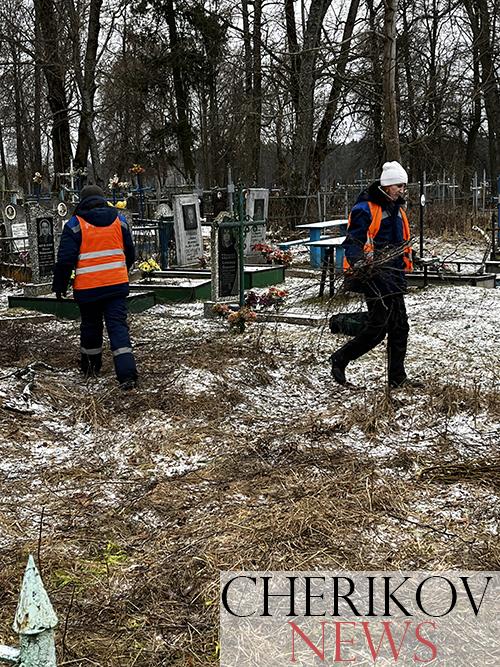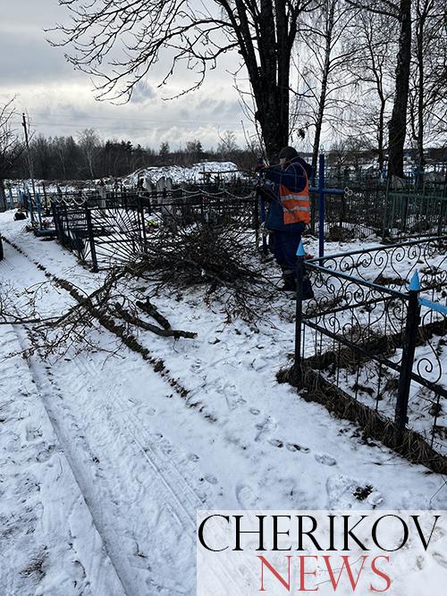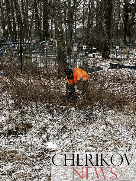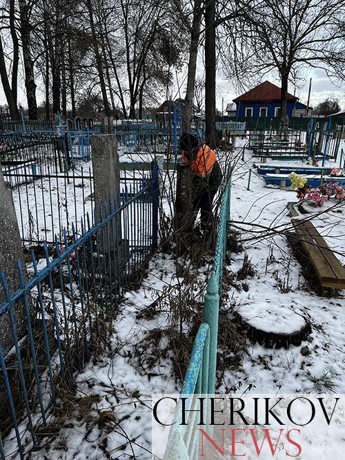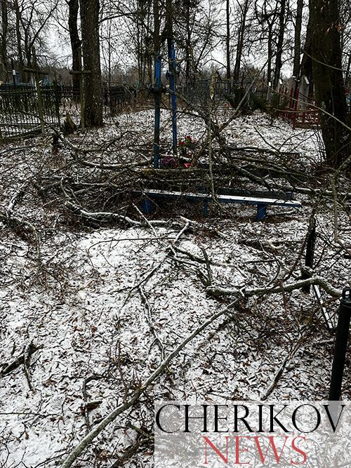 Полный порядок навели на старой части кладбища по ул. К. Маркса работники Чериковского жилкоммунхоза. Напомним, что это место в райцентре тоже не миновал ледяной дождь, который прошелся по нашему району в декабре прошлого года. Сломавшихся под напором ледяного панциря веток на кладбище было очень много. Они лежали повсюду: на оградах, могилах, крестах. Кроме этого, предстояло вырубить молодую поросль, которая вновь появилась за минувшее лето и осень.