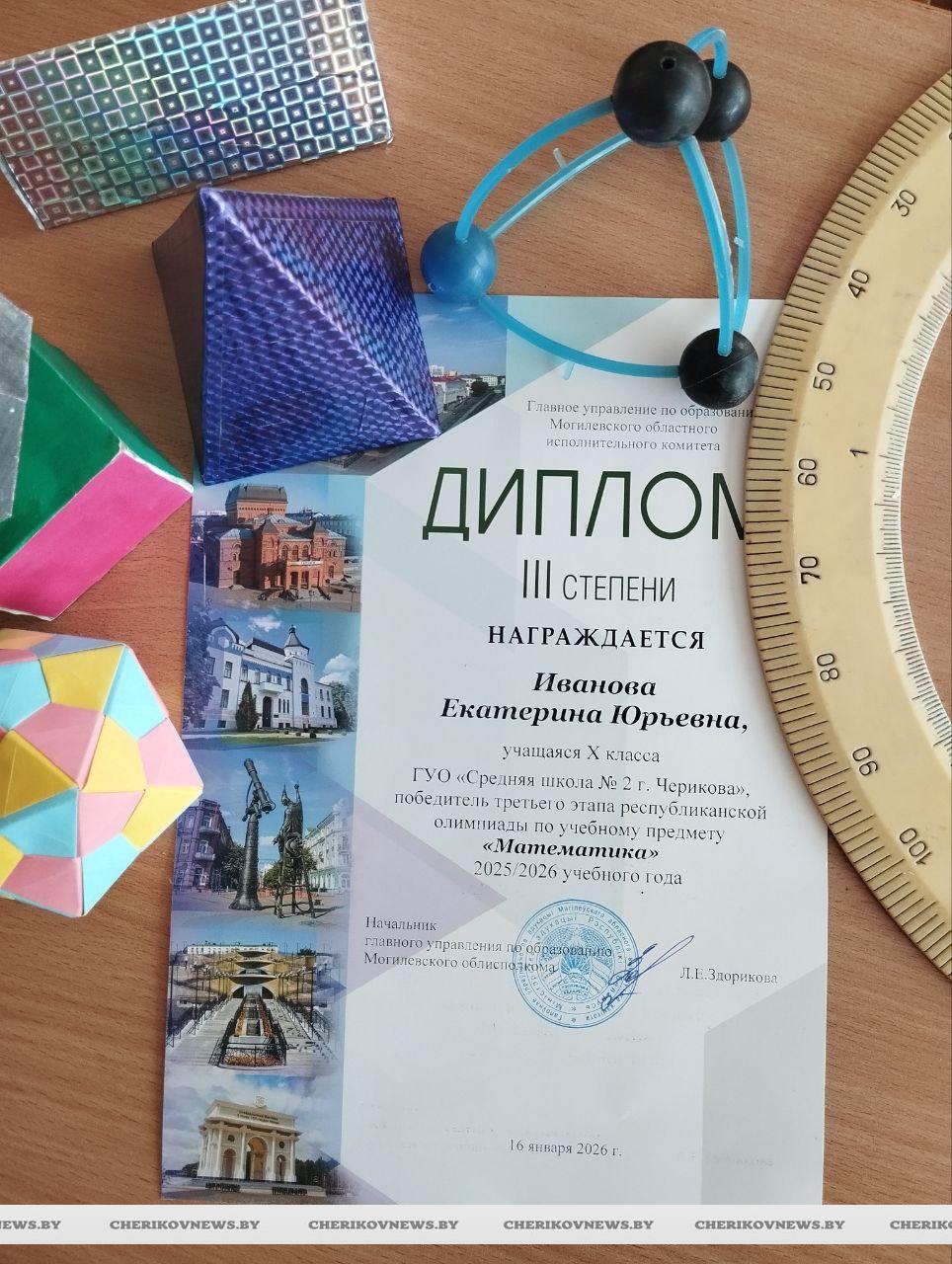 Так, настоящий триумф для сферы образования Чериковщины совершила учащаяся 10 класса средней школы №2 г. Черикова Екатерина Иванова, которая стала обладателем Диплома III степени областного этапа республиканской олимпиады по математике.