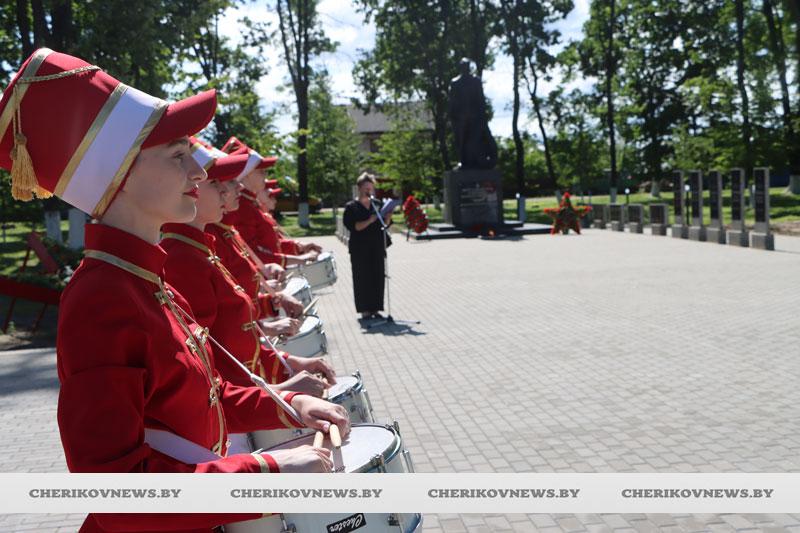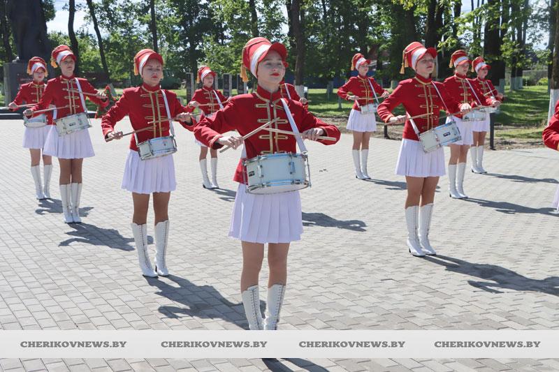 Символично, что накануне Дня Независимости Республики Беларусь одним из мест Черикова, где побывали представители лесной отрасли области, стал парк Победы. Здесь к гостям присоединилась заместитель председателя Чериковского райисполкома Елена Колосова. Всех их радушно и музыкально встретил оркестр барабанщиц «Фанфары» Чериковской детской школы искусств.