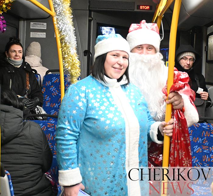 В Черикове Дед Мороз и Снегурочка сменили сани на автобус