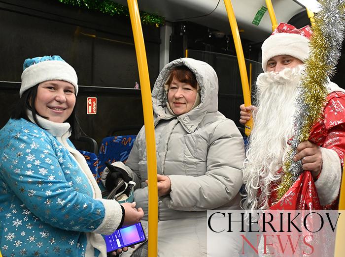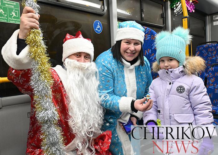 В Черикове коллектив Чериковского филиала Автопарк № 20 ОАО «Могилевоблавтотранс» приготовили для жителей города оригинальный сюрприз. Провели интерактив: Дед Мороз вместе с внучкой ездили по городу и поздравляли пассажиров с наступлением Нового года.