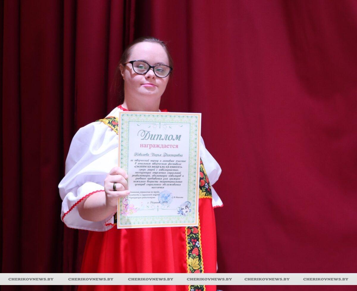 Ежегодное традиционное мероприятие, которое дает возможность людям с ограниченными возможностями здоровья реализовать творческий потенциал, вновь собрало посетителей отделений социальной реабилитации, абилитации инвалидов и дневного пребывания для граждан пожилого возраста из Костюковичского, Краснопольского, Славгородского, Чаусского, Чериковского центров социального обслуживания населения. Традиционно в мероприятии приняли участие воспитанники государственного учреждения образования «Чериковский центр коррекционно-развивающего обучения и реабилитации», которые открыли мероприятие хореографической композиций «Бацькава булка», а чуть позже сорвали овации в танце «Варись, кашка».